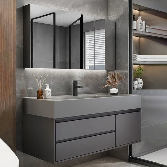 Light Luxury Rock Board Bathroom Cabinets with Smart Mirror