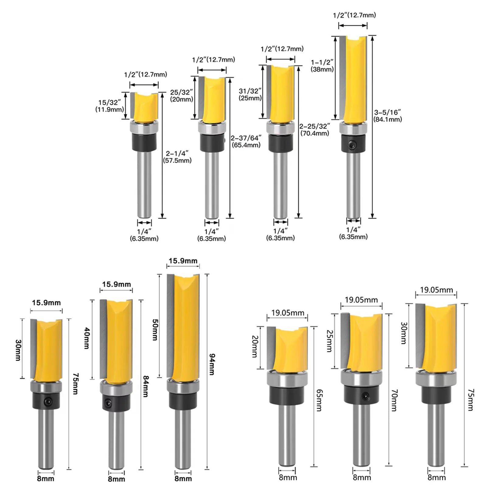 1/4in 8MM SHANK Z4 Flush Trim Router Bit Cutter For Wood BIT Router Bit