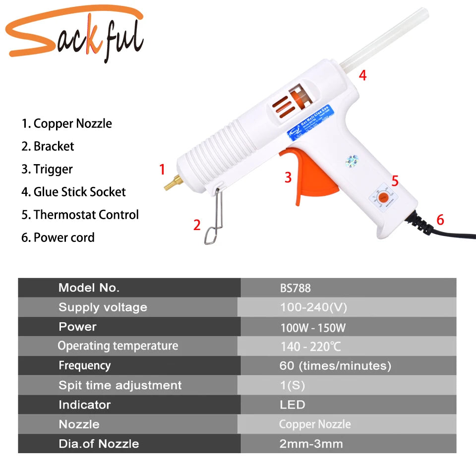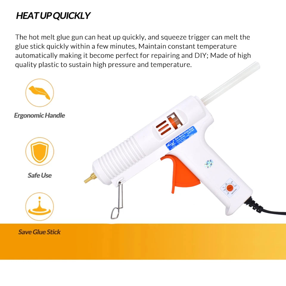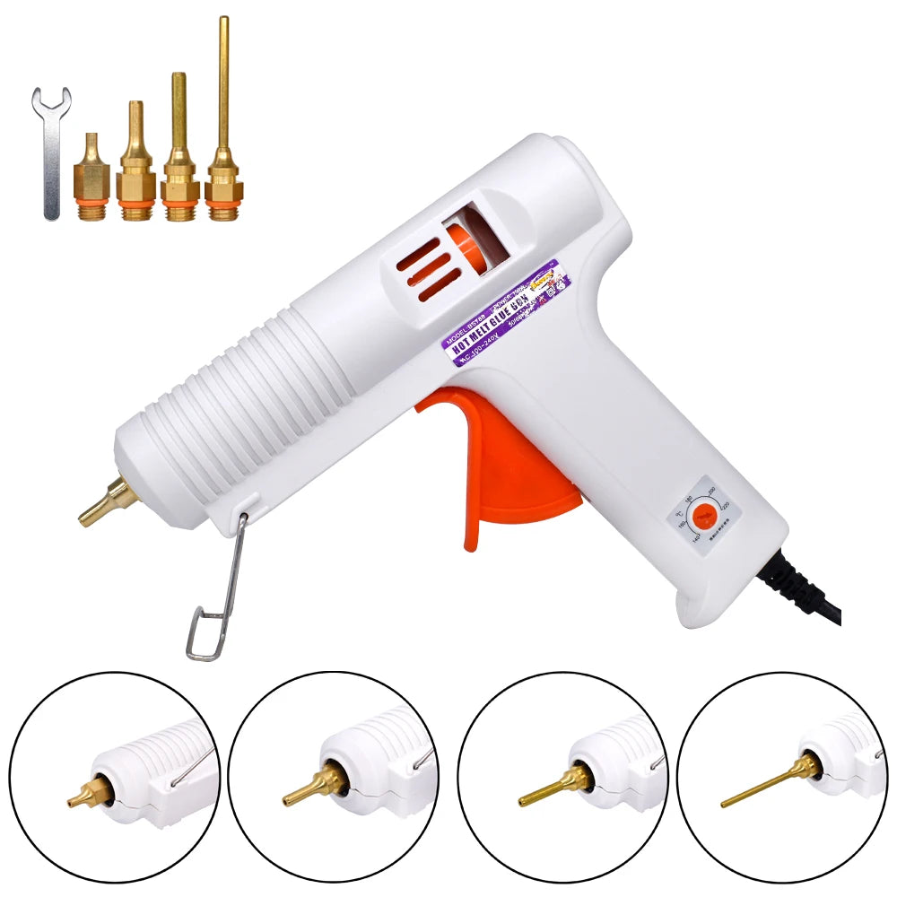Unleash your creativity with the 150W EU Plug Hot Melt Glue Gun! This professional-grade tool boasts high temperature settings and adjustable heating for maximum efficiency. Its copper nozzles provide leak-proof performance while the lightweight design and easy-squeeze trigger make crafting a breeze. Whether for home, school, or office projects, this glue gun is versatile and safe to use. Get ready to be amazed by its fast heating and customizable temperature settings. Plus, it comes with extra copper nozzles and glue sticks for added convenience. Elevate your DIY game today with this must-have Thermo Tool!
