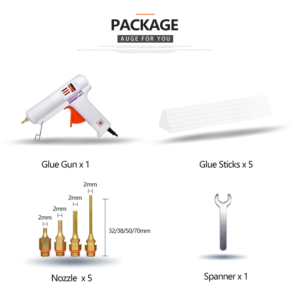 3.【Copper Nozzles】- Send with 1 or 4 extra interchangeable gun nozzles made of pure copper material. They have really good performance of leakage proof and glue used fluency