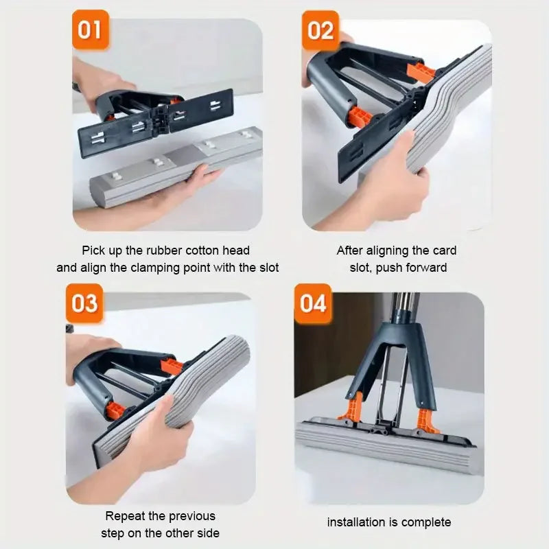 1pc Double-Fold Sponge Mop Floor Cleaning Self Squeeze Sponge Absorbent Household Floor Free Handwash Glue Cleaning Mop