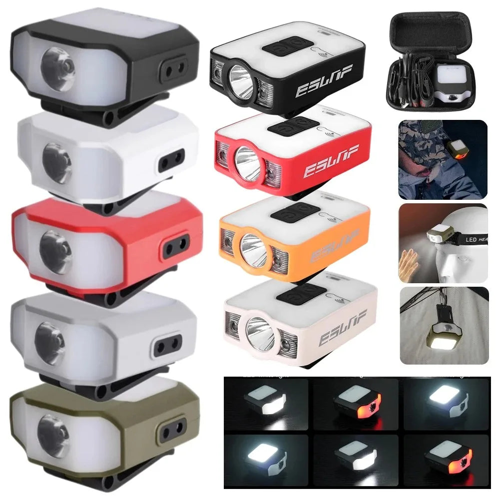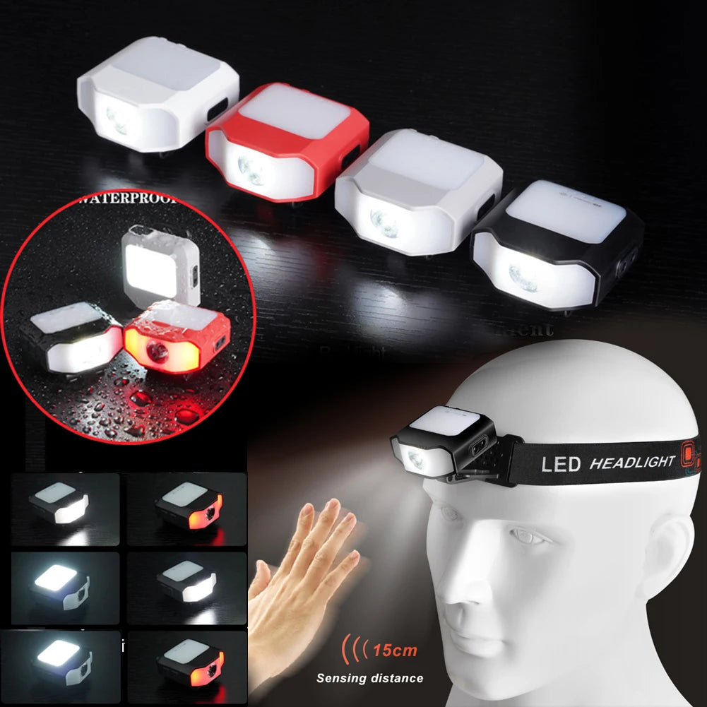 1PCS Mini COB LED Head Lantern Sensor Headlamp Flashlight Cap Clip on Light Headlights Portable Outdoor Camping Head Lamp