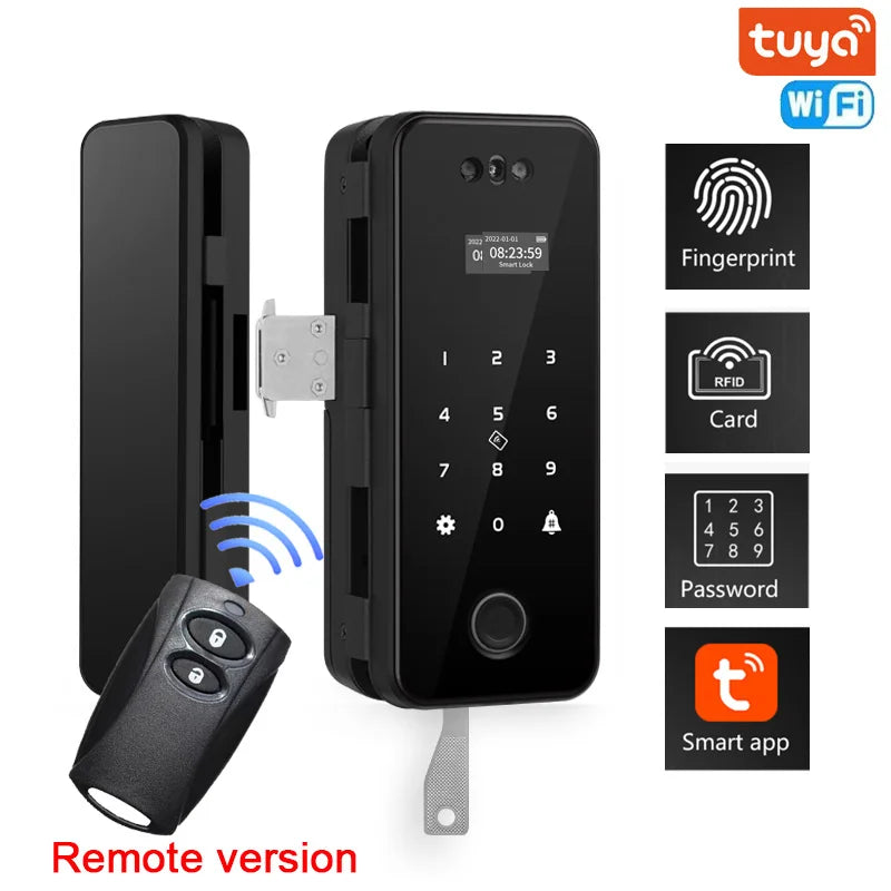 Kit 2 (WIFI LOCK): This kit includes a lock with a Tuya function and a remote controller. It supports card/code/fingerprint/Tuya smart app/Remote controller.
