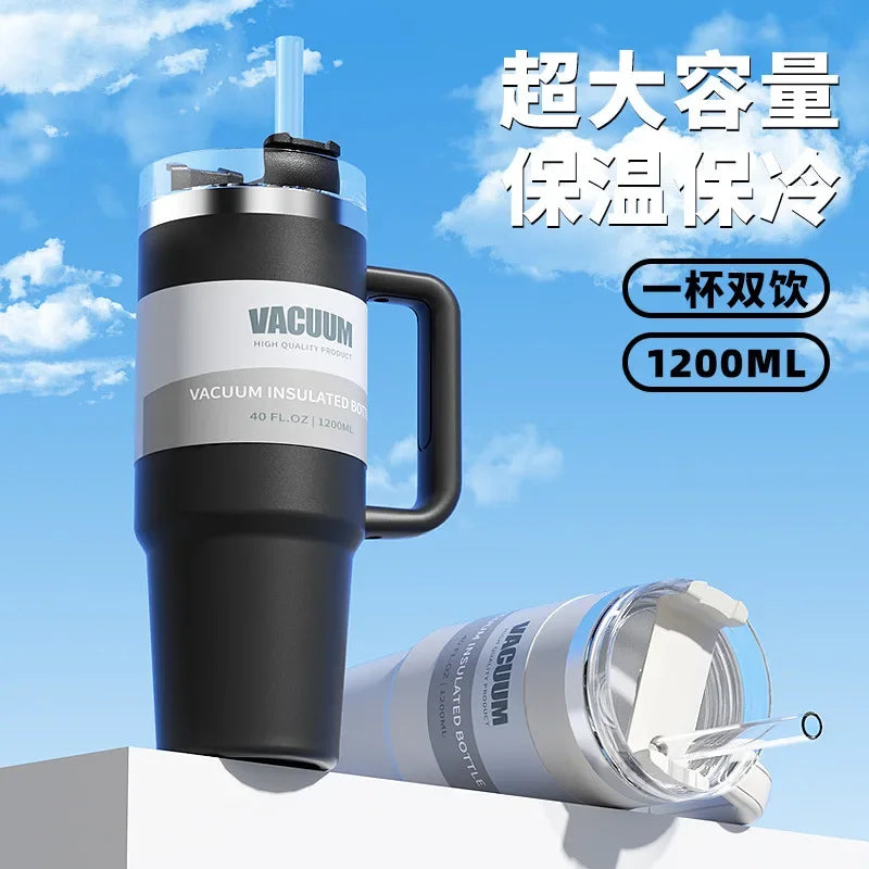 40oz Stainless Steel Tumbler with Handle & Flip Straw Lid – Hydration That Moves With You