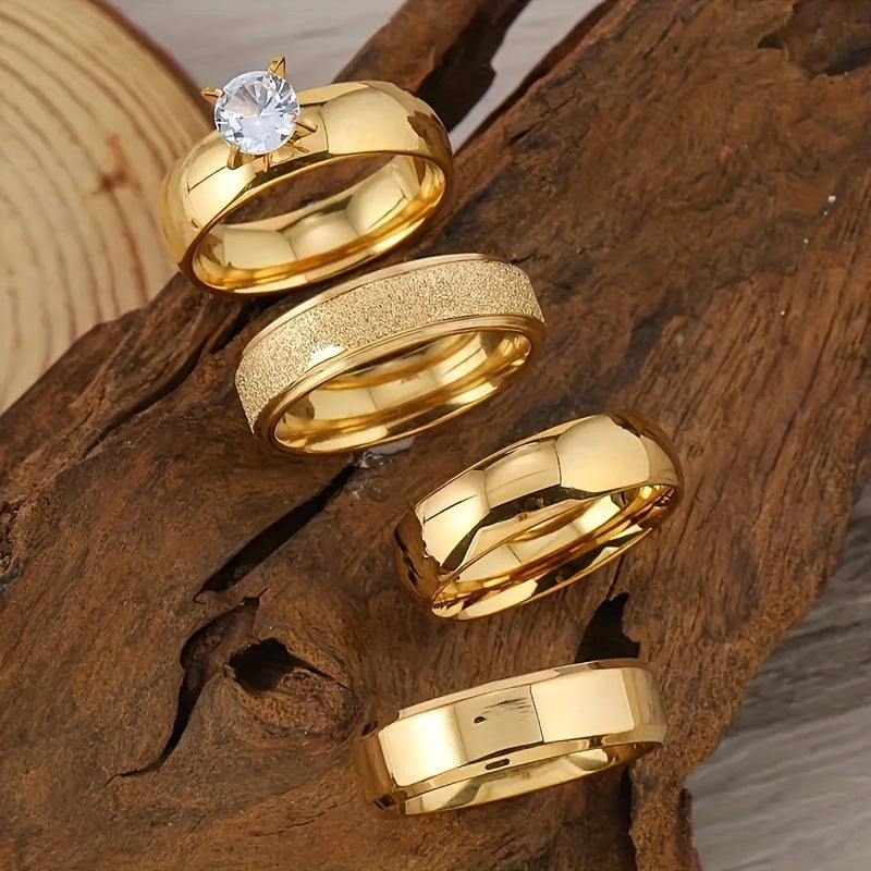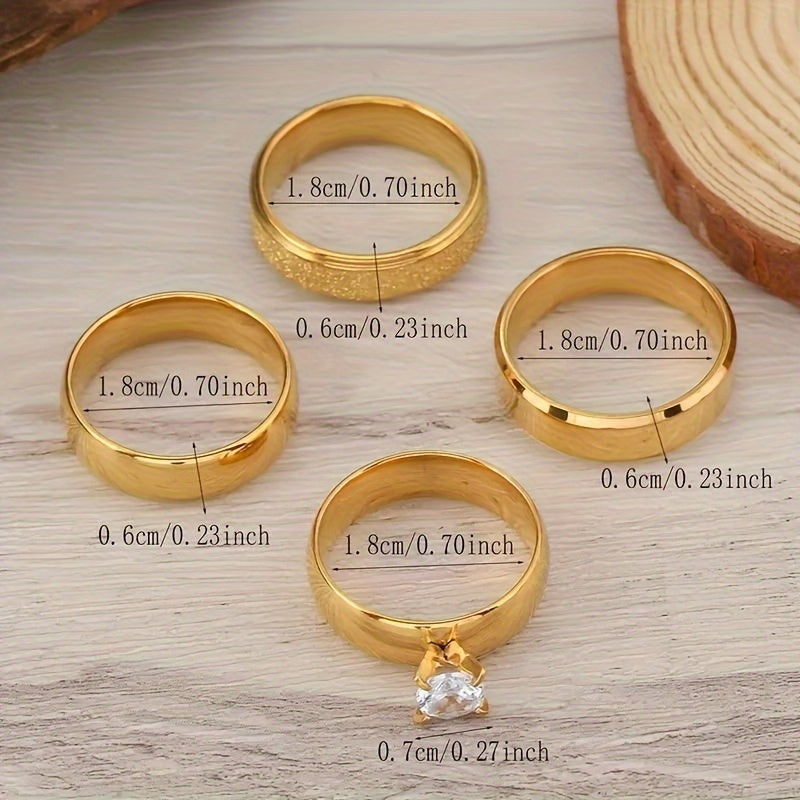 4pcs Vintage Style Ring Set with Rhinestone Accents – Timeless Elegance & Charm