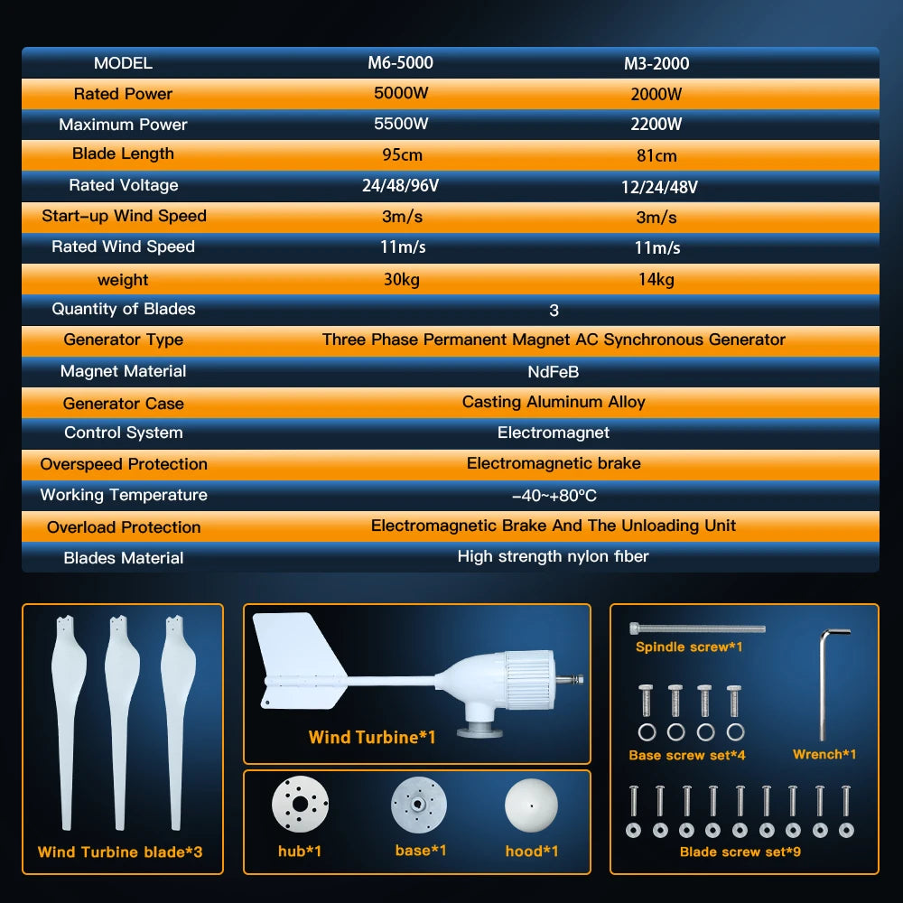 5000w 2kw Horizontal Wind Turbine Generator 96V 48V 24V Free Energy Magnetic Dynamo Strong Power 220v Inverter Output For Home