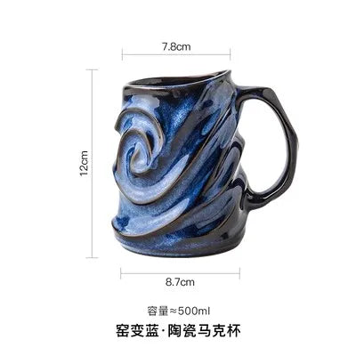 500ml Leaf Pattern Ceramic Coffee Mug Large Capacity Frosted Water Cup Office Coffee Tea Cup Kitchen Utensils