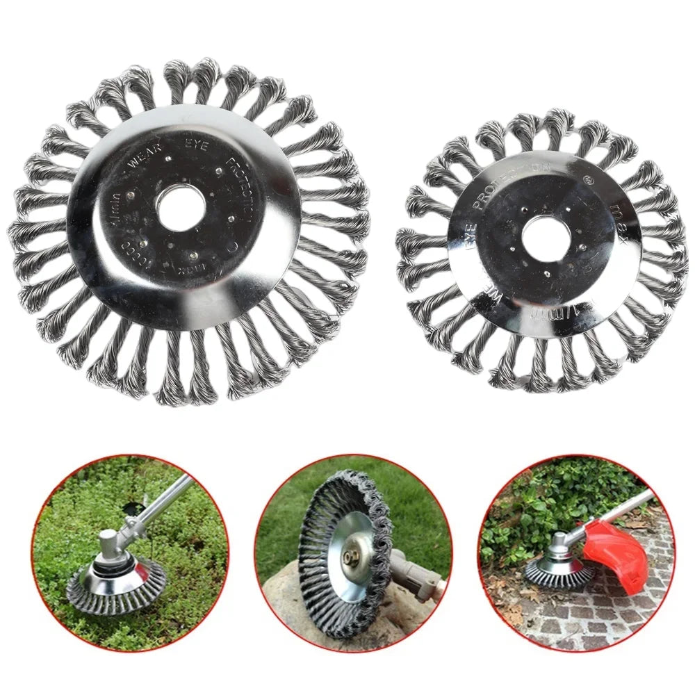 Upgrade your garden power tool with our steel grass trimmer head, designed for lawnmower and brushcutter kits. With 6/8 inches of cutting width, this tool efficiently removes weeds and dust, ensuring a well-groomed lawn. Enhance your gardening experience with this durable and versatile attachment, perfect for maintaining pristine outdoor spaces.