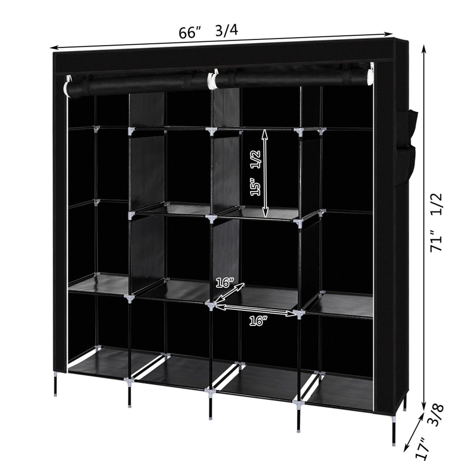 Introducing the 67 Clothes Closet Portable Wardrobe, the ultimate solution for all your clothes storage needs! This versatile storage rack comes with 12 shelves and 4 side pockets, providing ample space to neatly organize and store your garments, shoes, accessories, and more. Perfect for bedrooms, closets, apartments, dorms, or any space where additional storage is required.