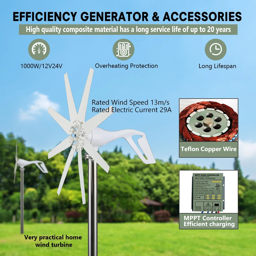 1000W 8 blades wind turbine: