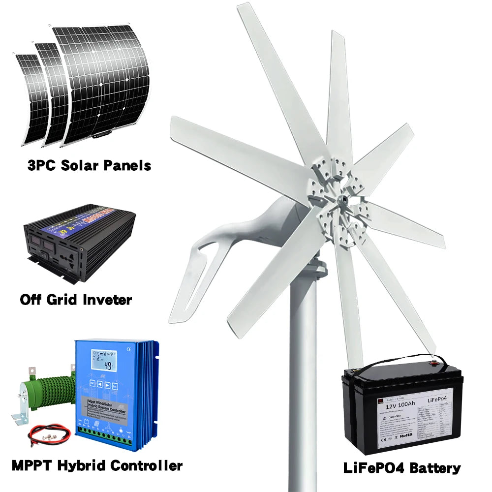 6kwh Horizontal Wind Turbine 12V 24V 48V With Free Controller and Solar Cell System For Household 220V
