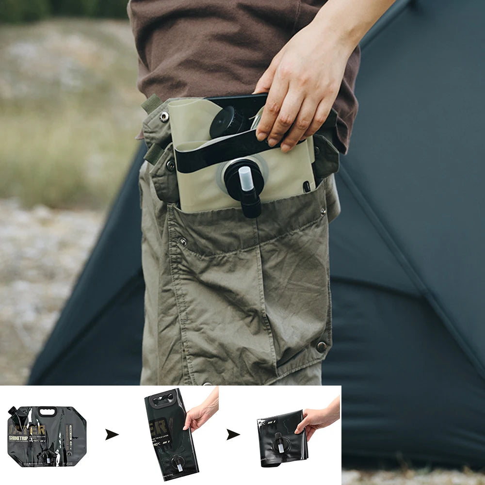 Built-in water tap: The integrated spigot allows convenient access to the water without needing to remove the cap, thereby maintaining its cleanliness and safety. - Safer and convenient: This portable water bag is specially crafted with safety and convenience in mind, ensuring effortless transportation and usage for all your outdoor adventures.