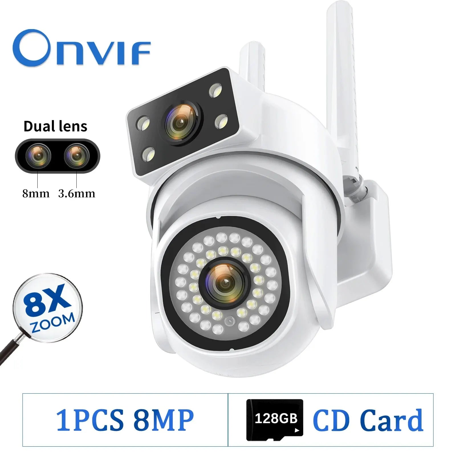 8MP 5G PTZ Dual Lens Camera Wifi IP Security Surveillance Dual Screen Video Full Color Night Vision Outdoor 6MP Cameras 8x Zoom