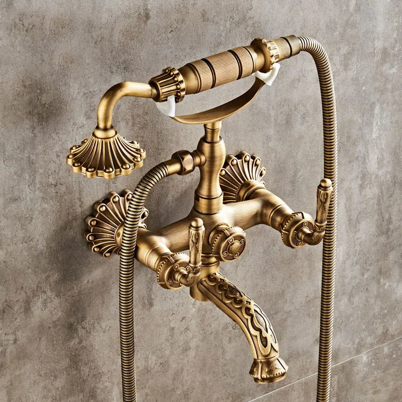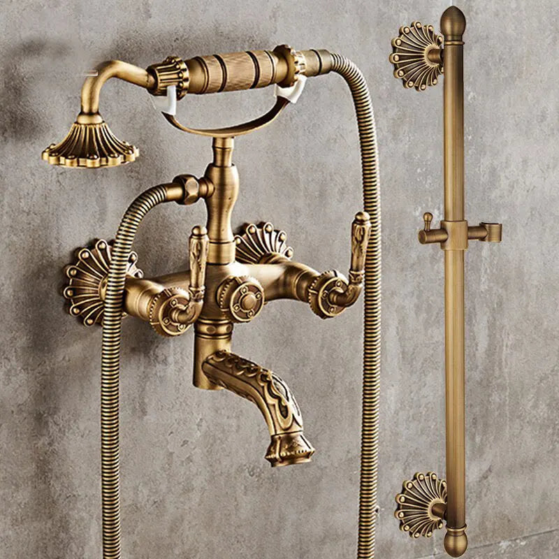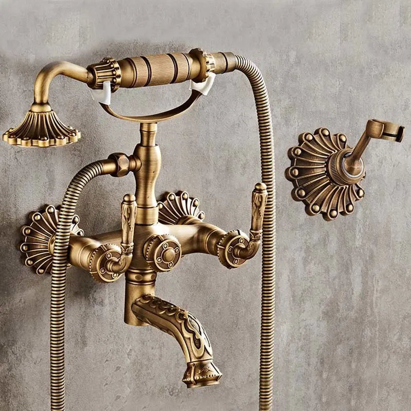 Antique Brass Wall Mounted Bathtub Shower Faucet Set