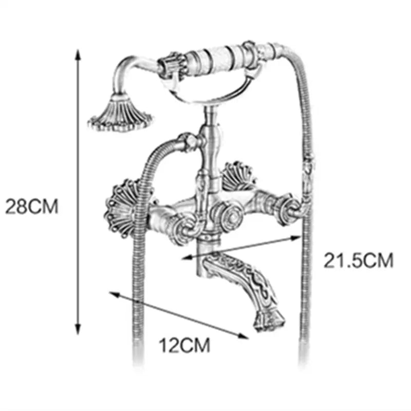 Add vintage charm to your bathroom with our Antique Brass Bathtub Shower Faucet Set. Featuring a wall-mounted design and a swivel tub spout, this fixture offers convenience and flexibility. The dual-control carved mixer tap allows for precise water temperature adjustment. Crafted with intricate details and finished in antique brass, it brings classic elegance to your bath space. Elevate your bathing experience with this timeless and functional faucet set.