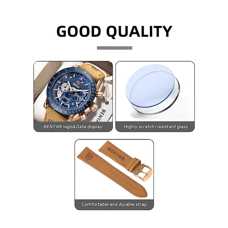 Upgrade your wrist game with the BENYAR Men's Stylish Sports Leather Watch—where elegance meets performance! ⌚🔥
