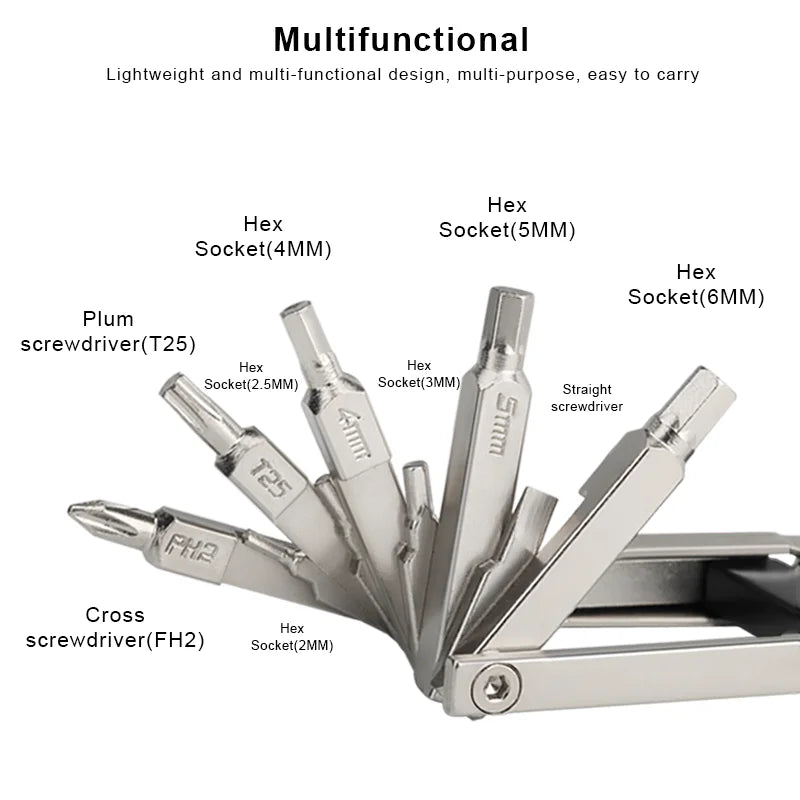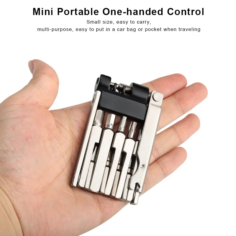 Simplify your bike maintenance with our versatile Bicycle Repair Tool Kit. This set includes a foldable hex spoke wrench for various bike sizes, a chain cutter for seamless repairs, and a screwdriver for multi-purpose use. Keep your mountain or road bike in top condition with this must-have tool set.