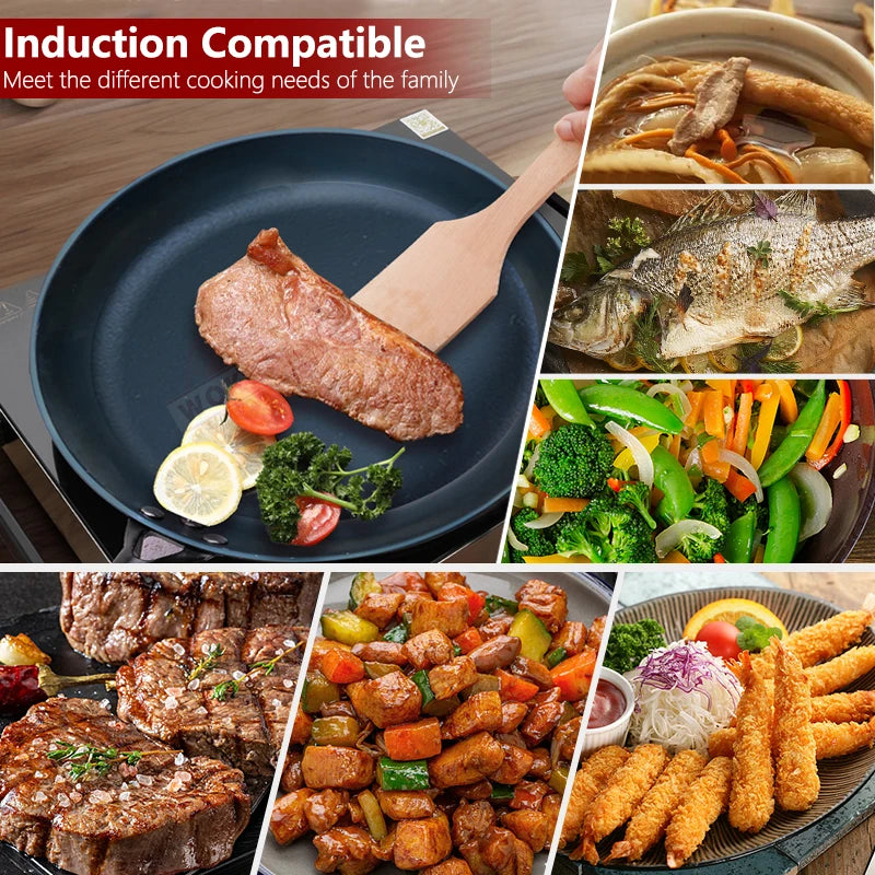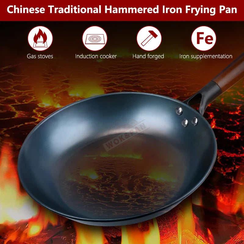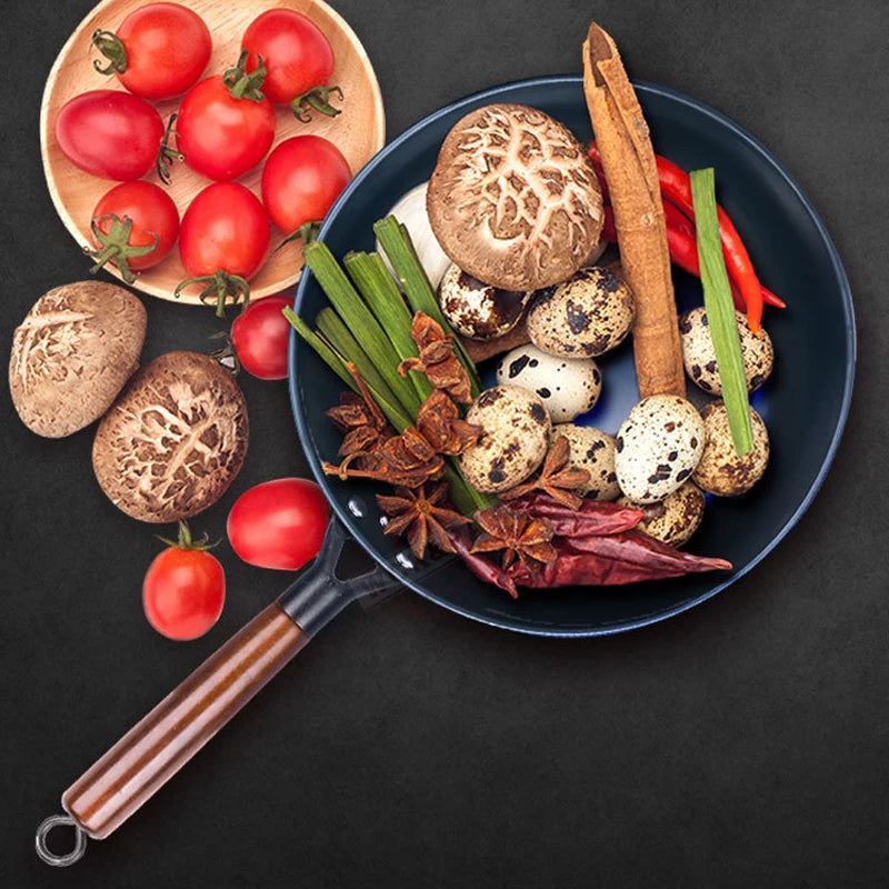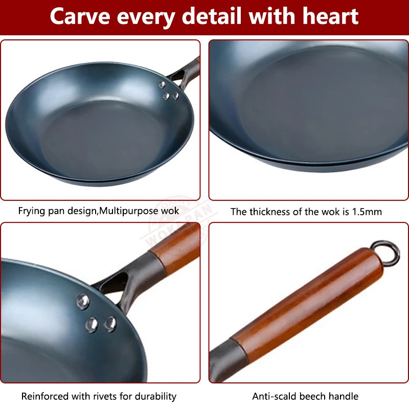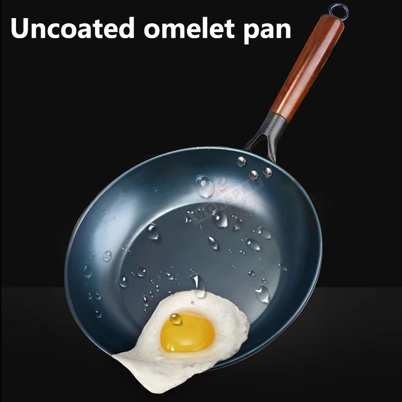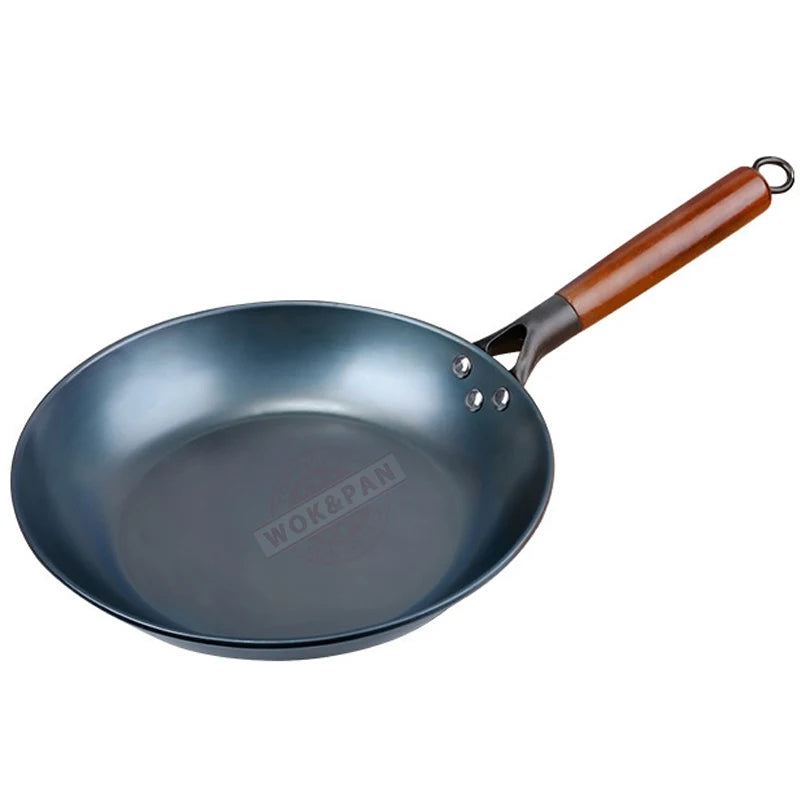 Introducing our blue iron frying pan, ideal for cooking steak, omelettes, pancakes, and more. With its uncoated surface, this pan promotes natural seasoning over time, enhancing flavor and texture with each use. Crafted for versatile kitchen cooking, it's a must-have addition to your cookware collection for delicious, home-cooked meals.
