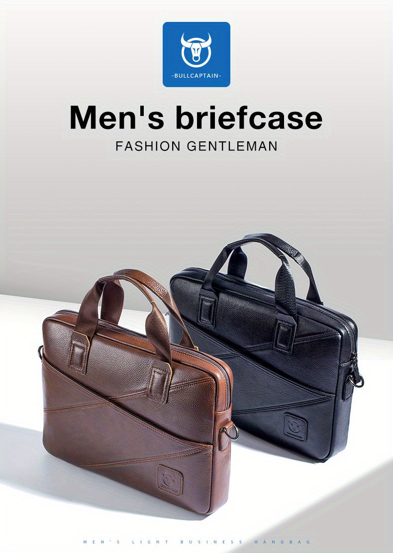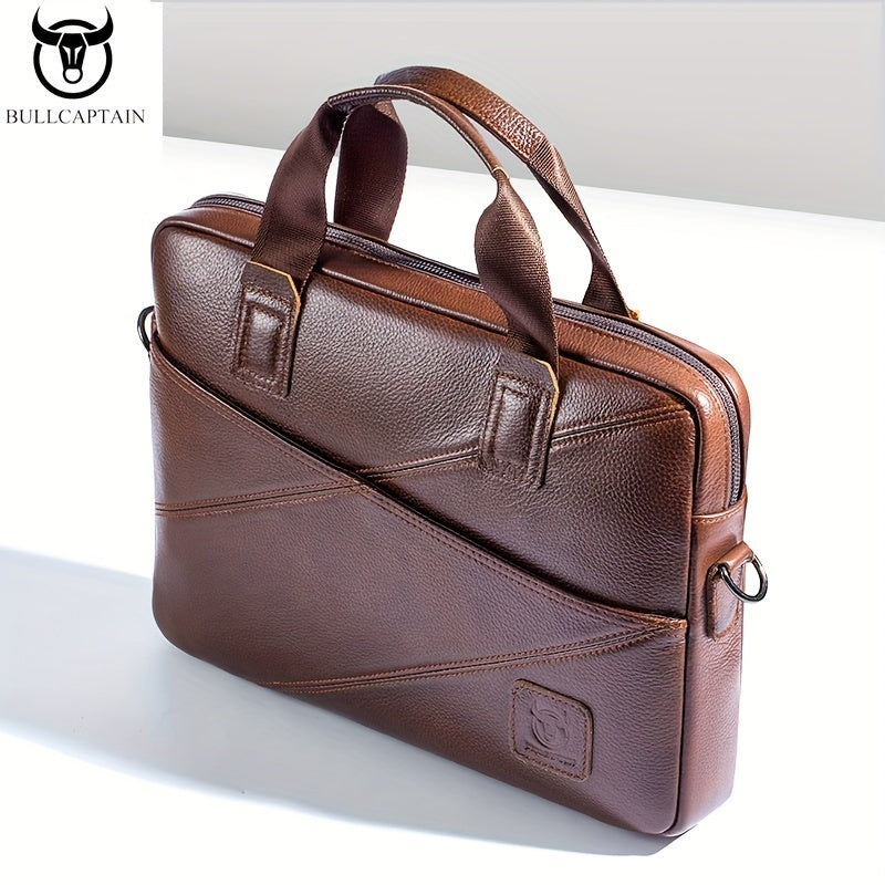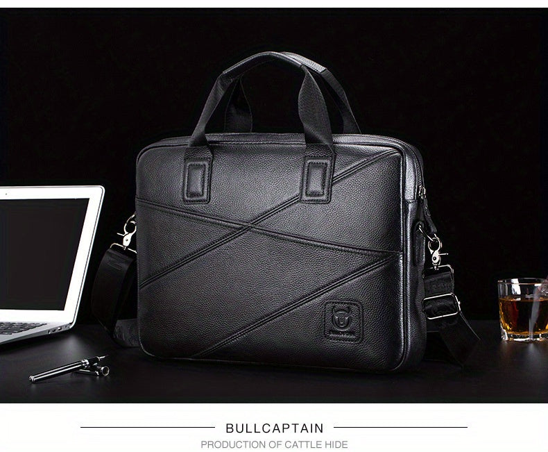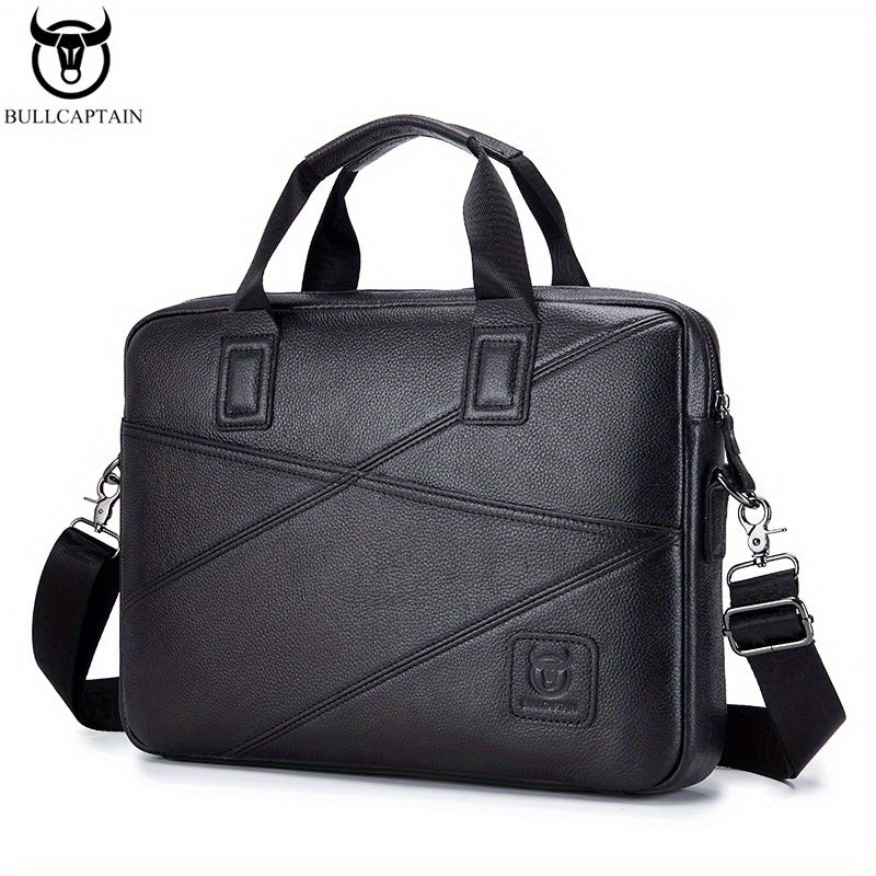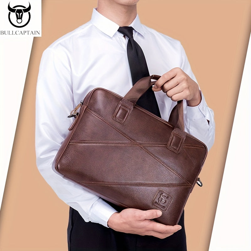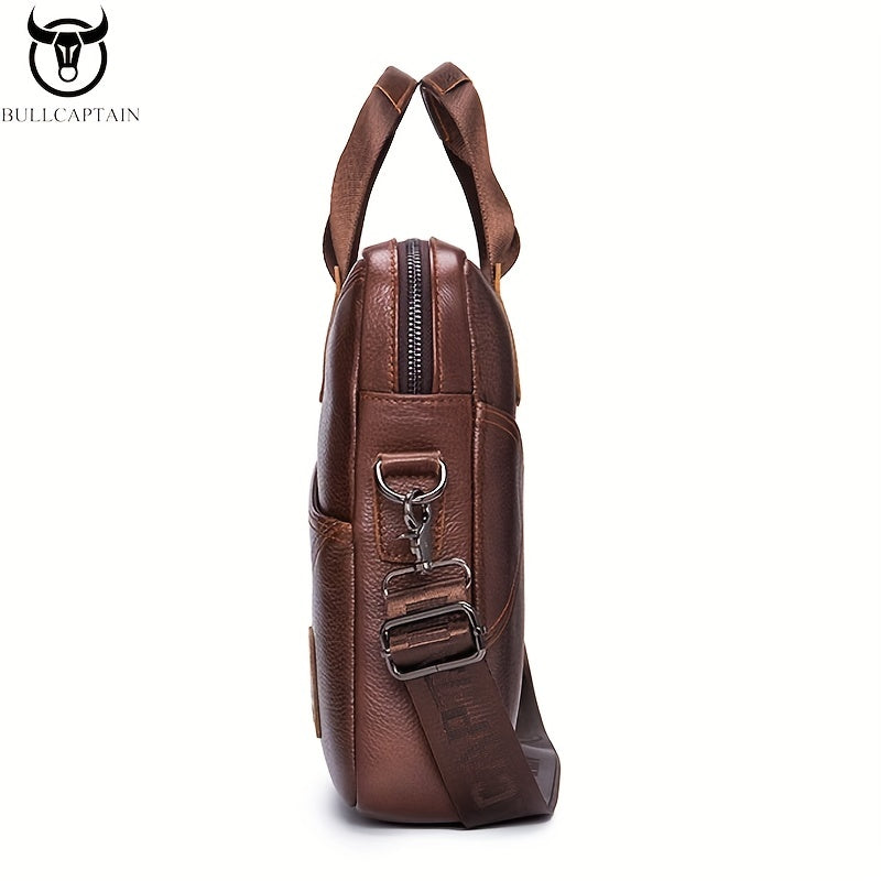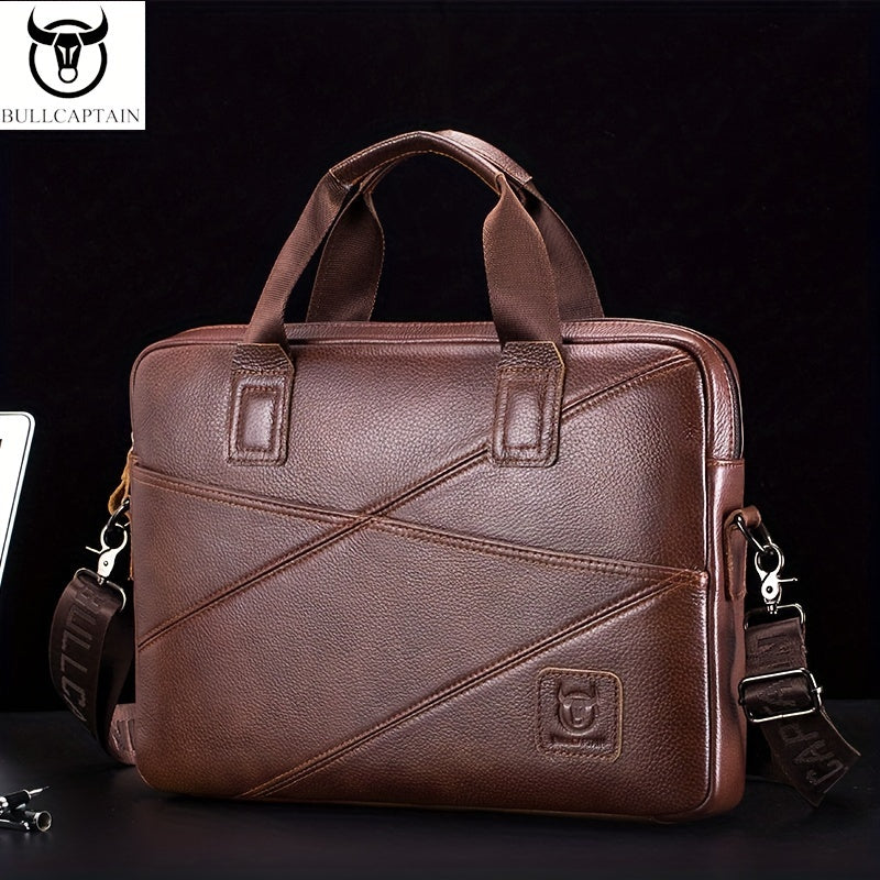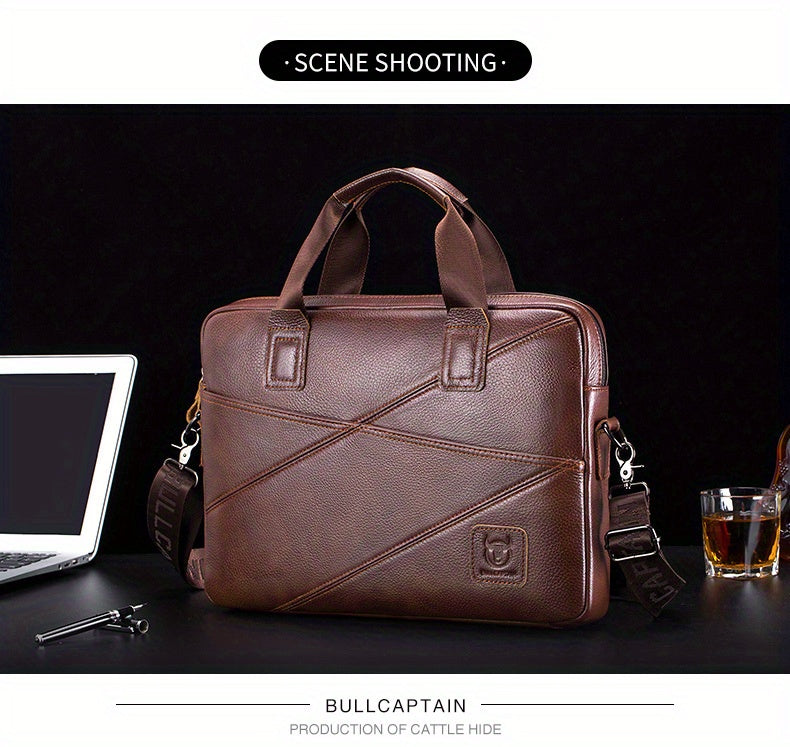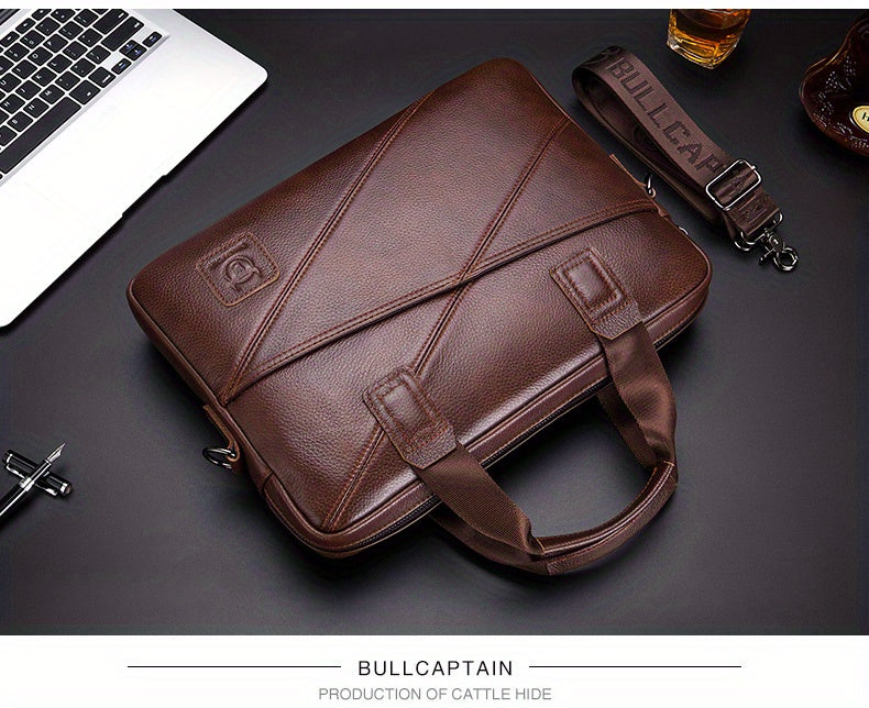 BULLCAPTAIN Men's Leather Briefcase – Multifunctional Handbag for Work & Travel