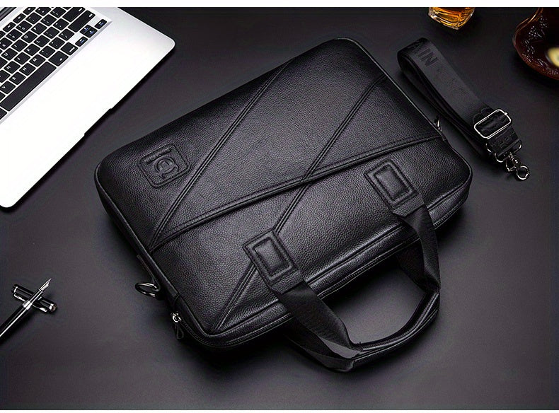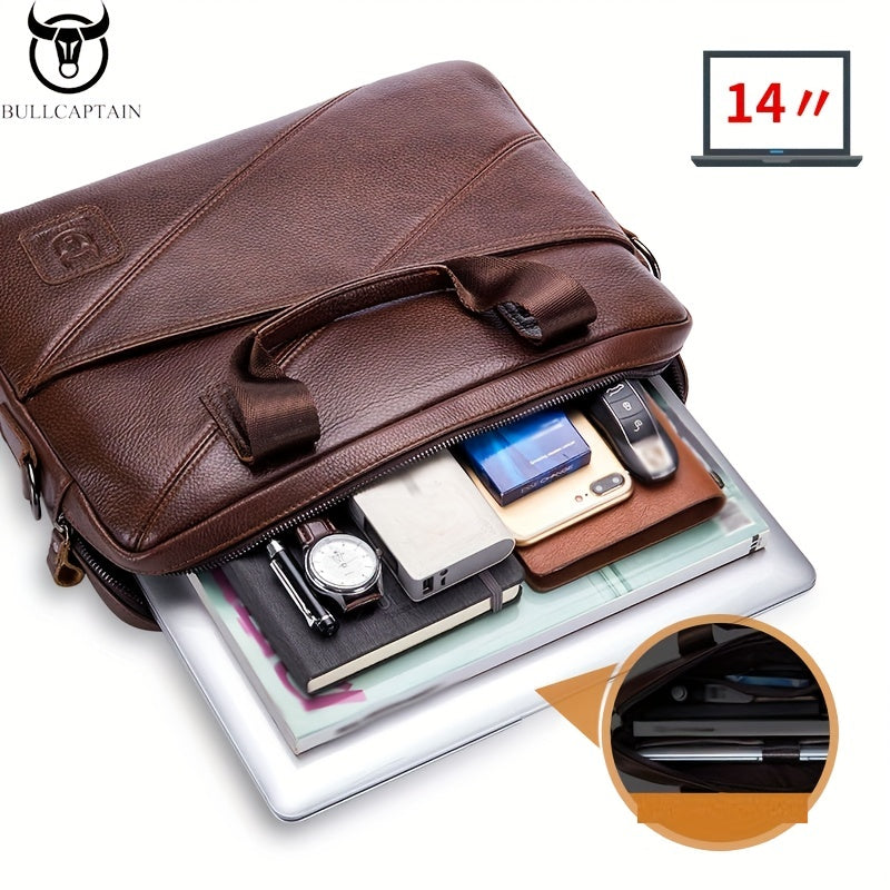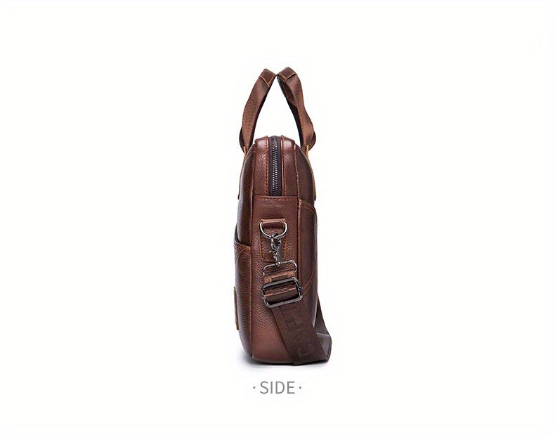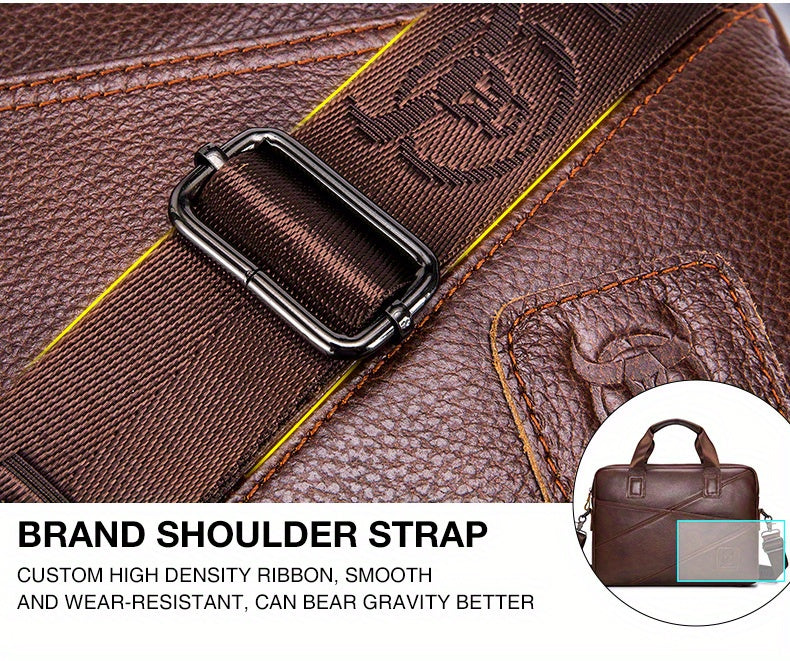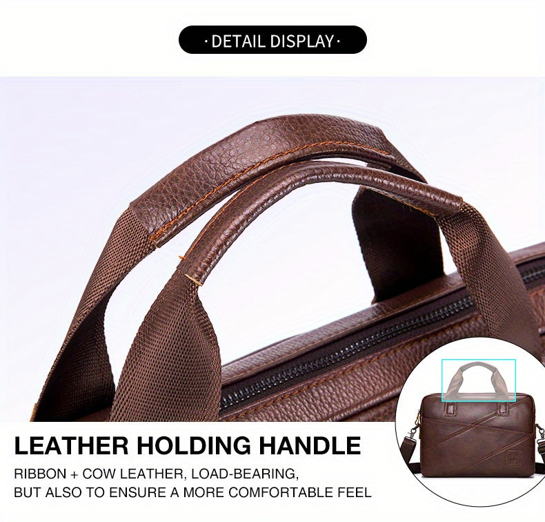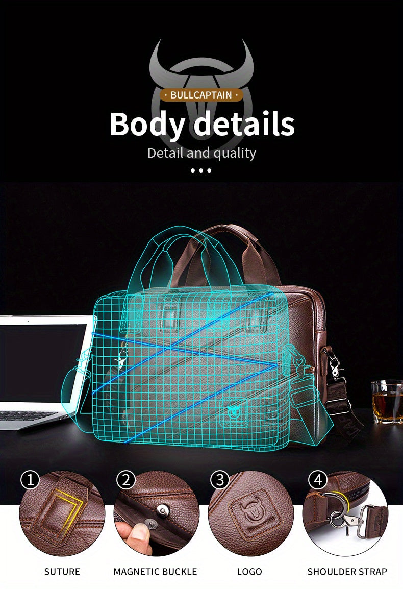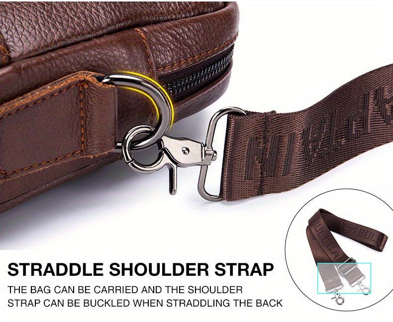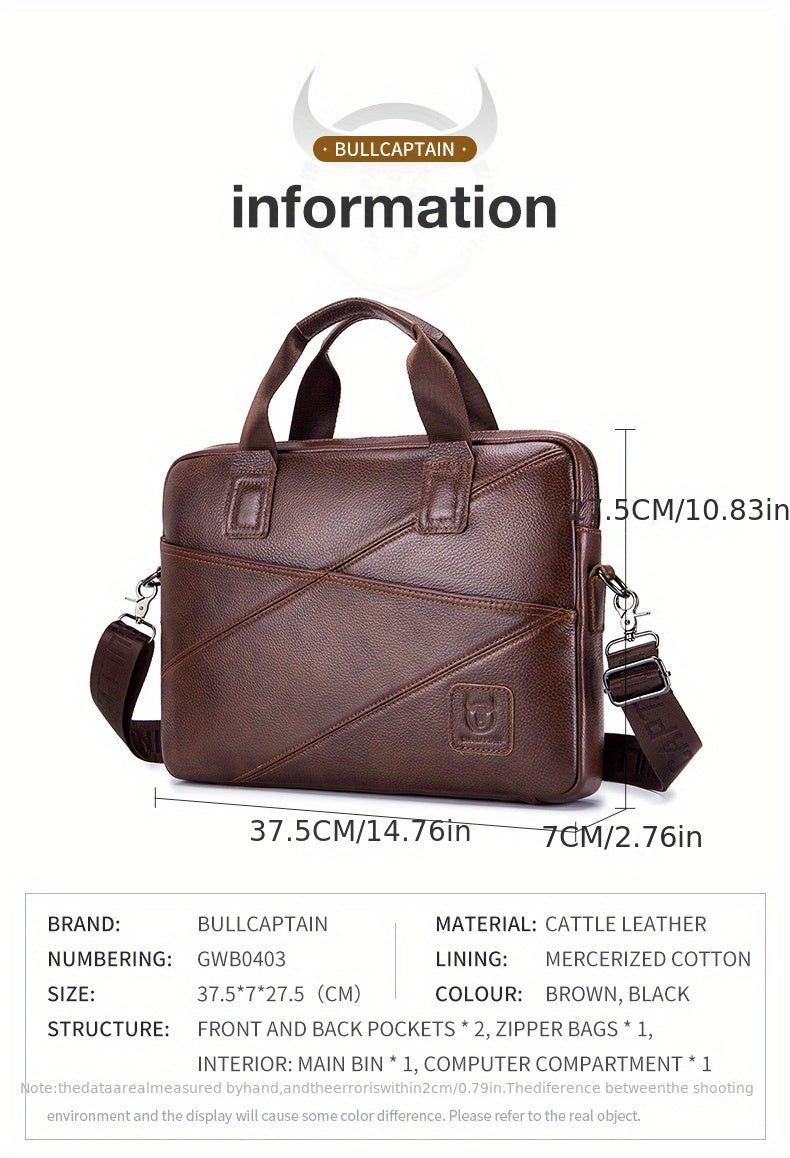 BULLCAPTAIN Men's Leather Briefcase – Multifunctional Handbag for Work & Travel