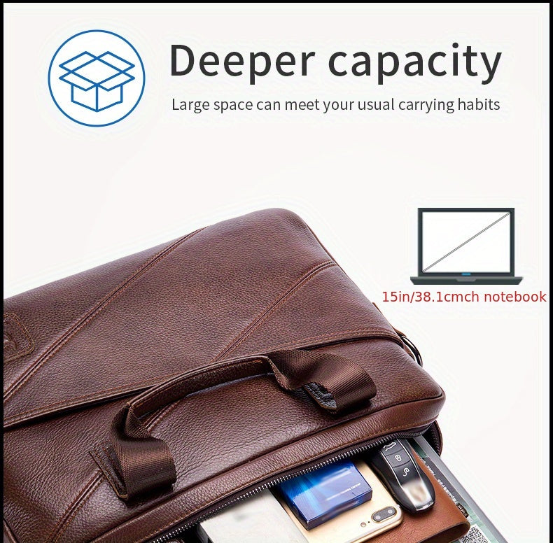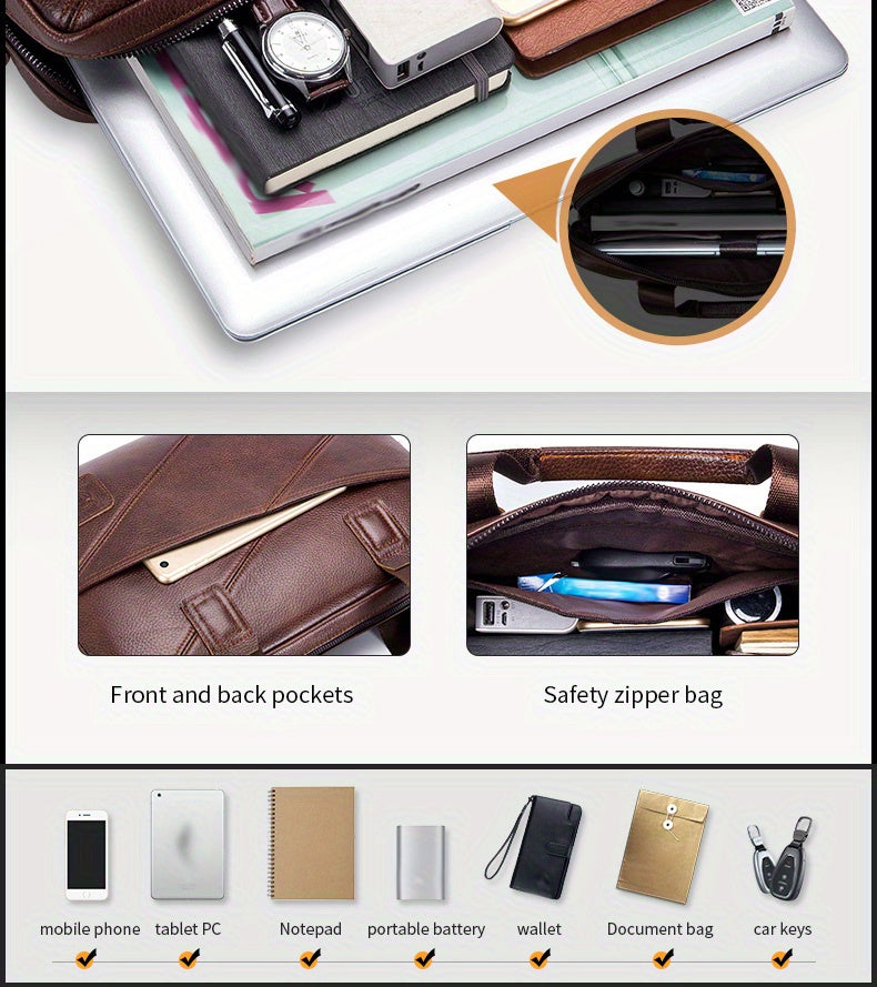 · Spacious and Versatile: With large capacity, this leather briefcase can hold all your essentials for work, business trips, and daily use. It can be used as a handbag, shoulder messenger bag, or even a computer bag.