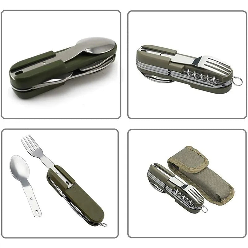 Camping Cutlery Stainless Steel Folding Knife Fork Spoon Portable Outdoor Tableware Camping Equipment