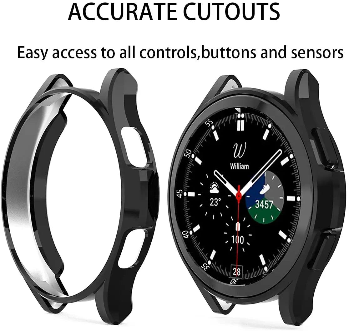 Effective Protection: This case is crafted with soft, slim-plated TPU to provide comprehensive protection for your Galaxy Watch 4 Classic, safeguarding it from scratches, drops, and bumps.