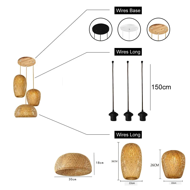 Illuminate your living space with our Classic 3-Piece Bamboo Wood Pendant Lamp Set. These charming ceiling lights add a touch of natural elegance to any room, whether it's the living room, bedroom, or study. Featuring E27 fixtures, they provide warm and inviting lighting suitable for various activities. Elevate your home decor with these luminaire chandeliers, perfect for adding a cozy ambiance and a touch of sophistication to your space.