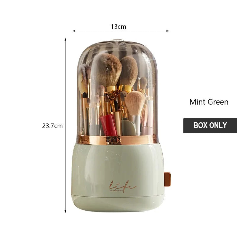 The dustproof design creates a pristine skincare display for your vanity, allowing you to showcase your favourite products while keeping them free from dirt and grime. Additionally, it includes a stylish holder specifically designed for your makeup brushes, complete with a chic lid that adds an extra touch of elegance. Elevate your beauty routine with this functional and aesthetically pleasing storage solution.