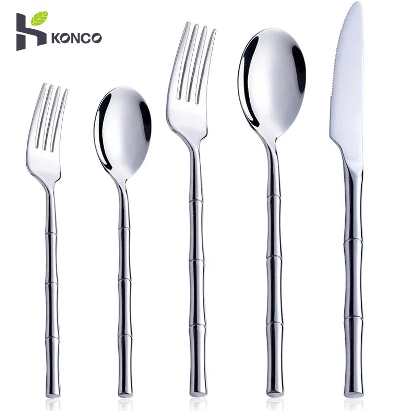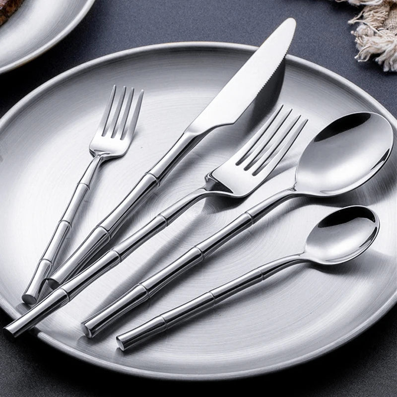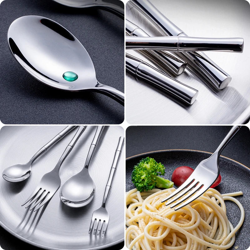 Elevate your dining experience with our Creative Bamboo Handle Cutlery Set. Crafted from high-quality 304 stainless steel, this set includes steak knives, forks, and spoons, all featuring unique bamboo handles. Perfect for adding a touch of natural elegance to your tableware collection, whether for everyday use or special occasions. Upgrade your dining experience with this stylish and durable flatware set.
