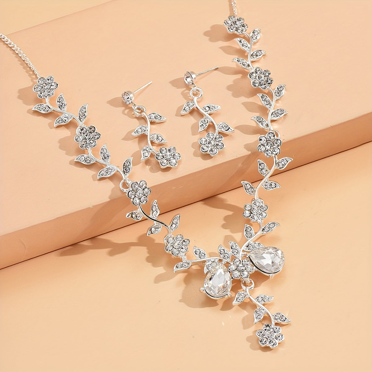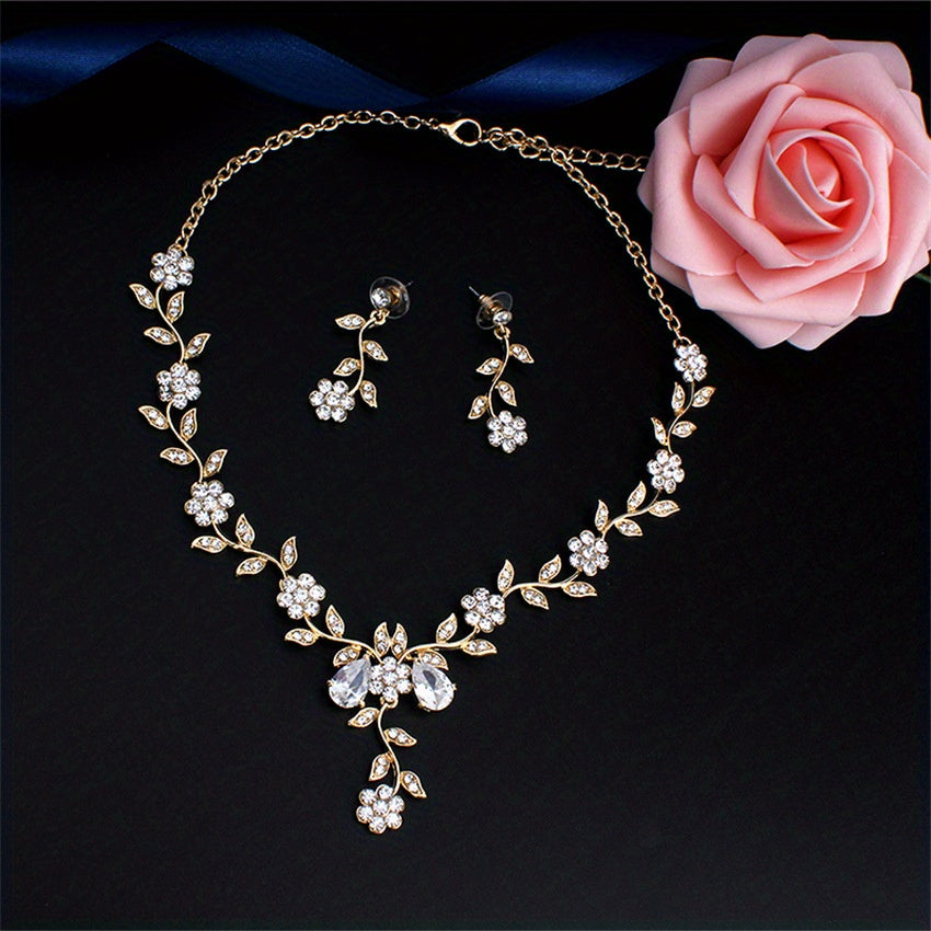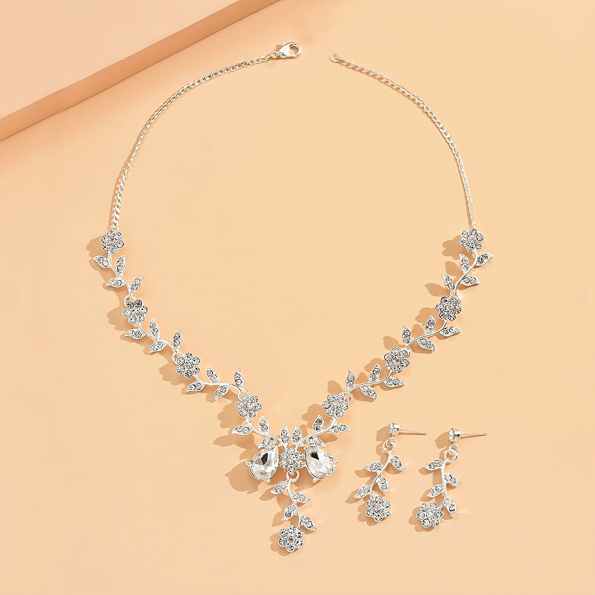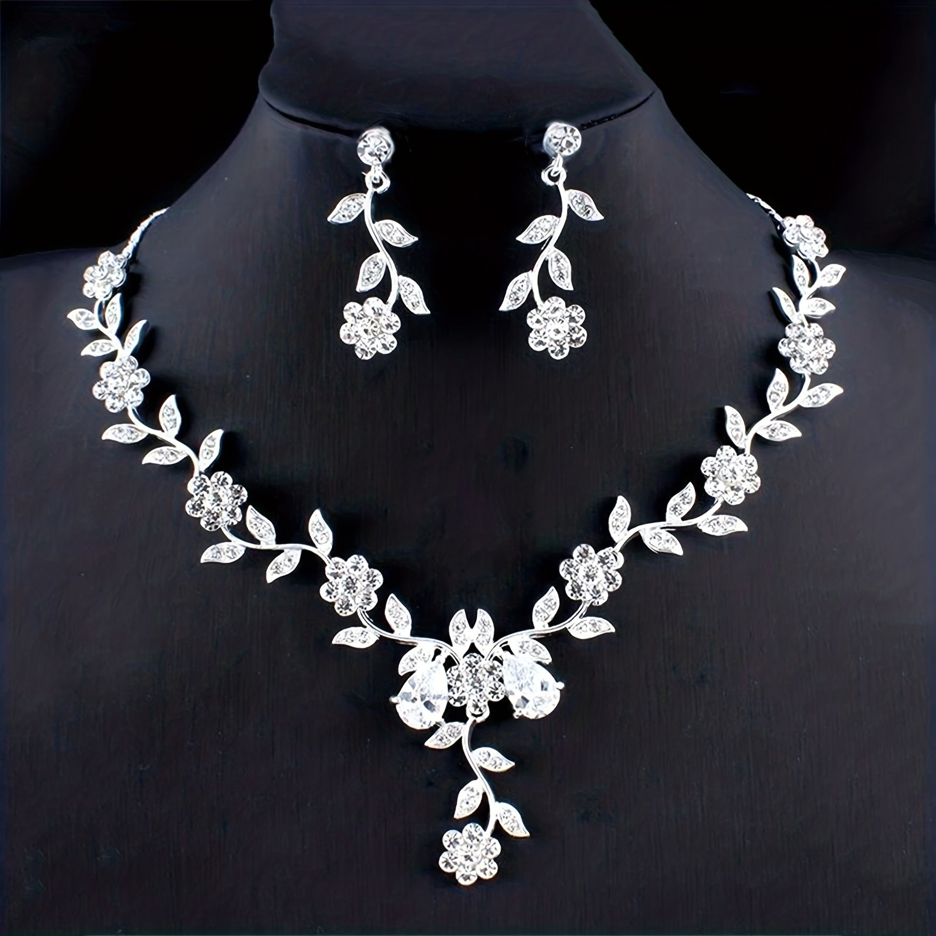 The Earrings Plus Necklace Elegant Jewelry Set is crafted with attention to detail, using high-quality materials to ensure a long-lasting, luxurious shine. Its timeless design combines classic elegance with modern flair, making it suitable for a wide variety of occasions, from weddings and galas to romantic dinners or evenings out.