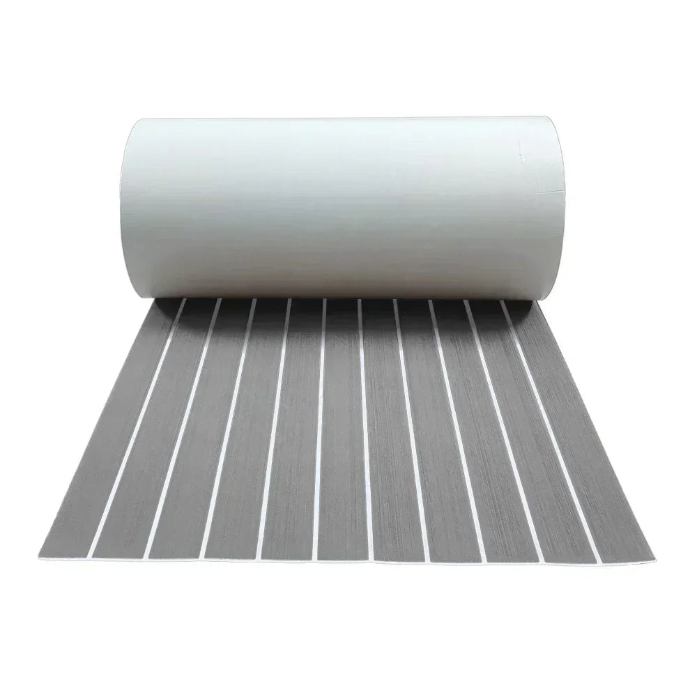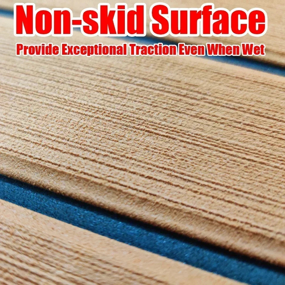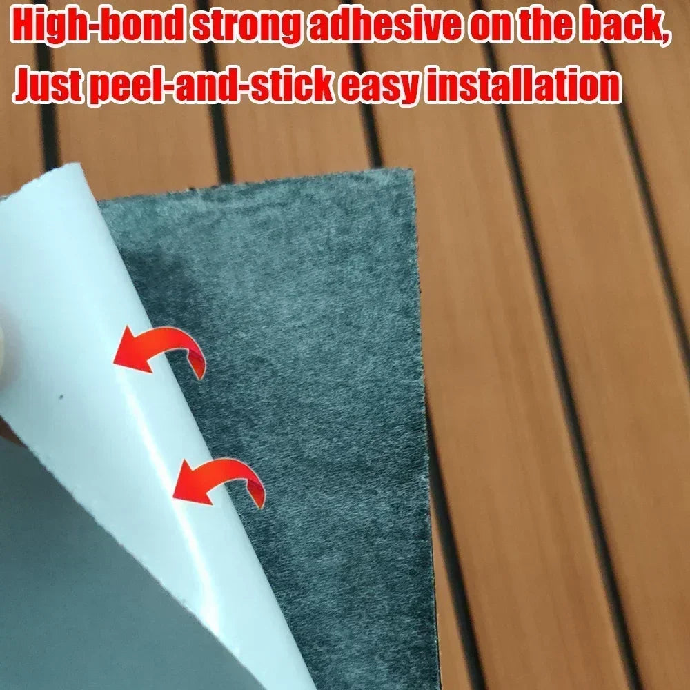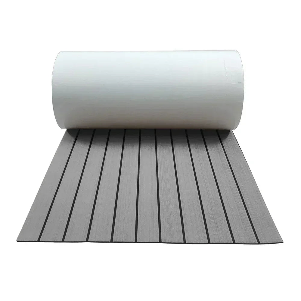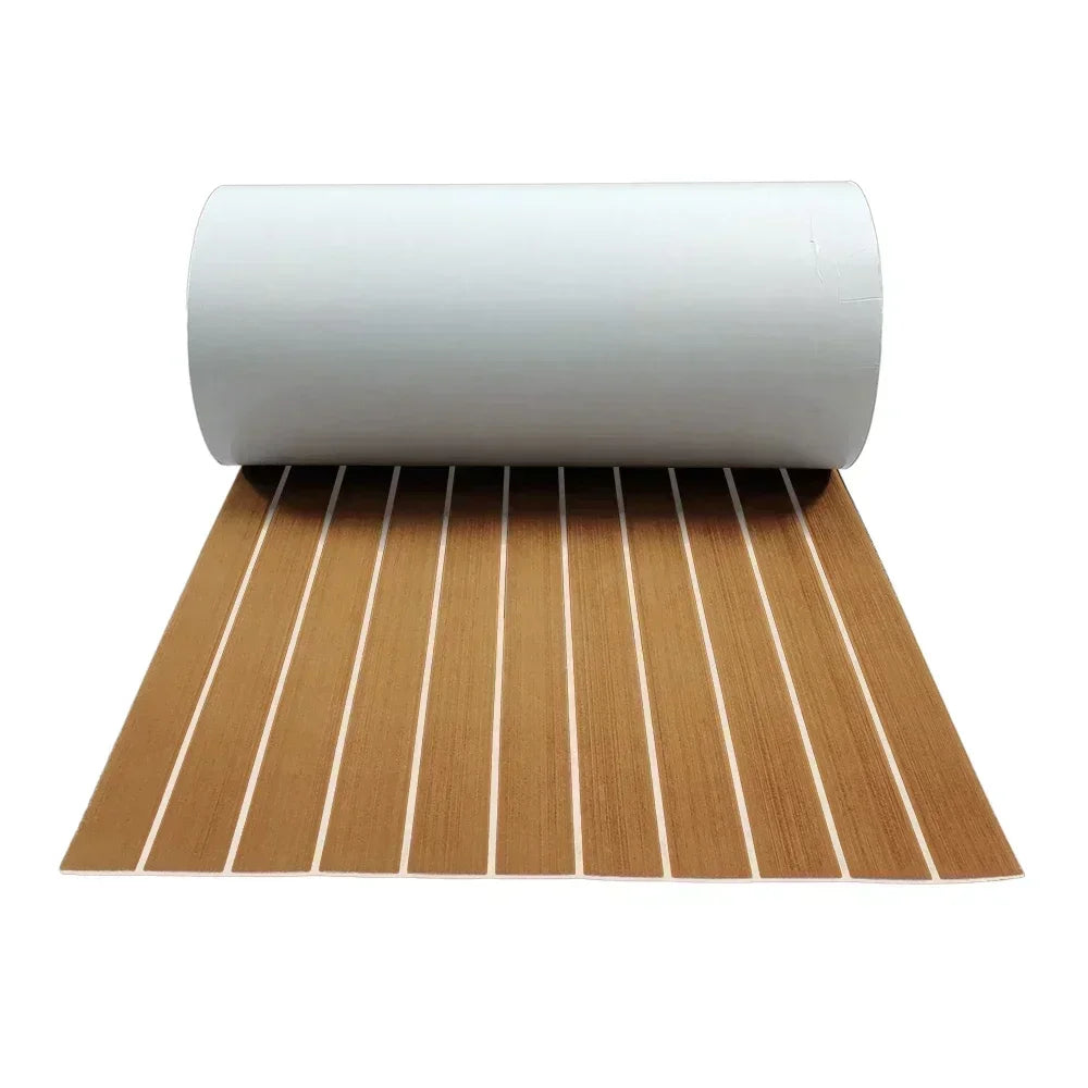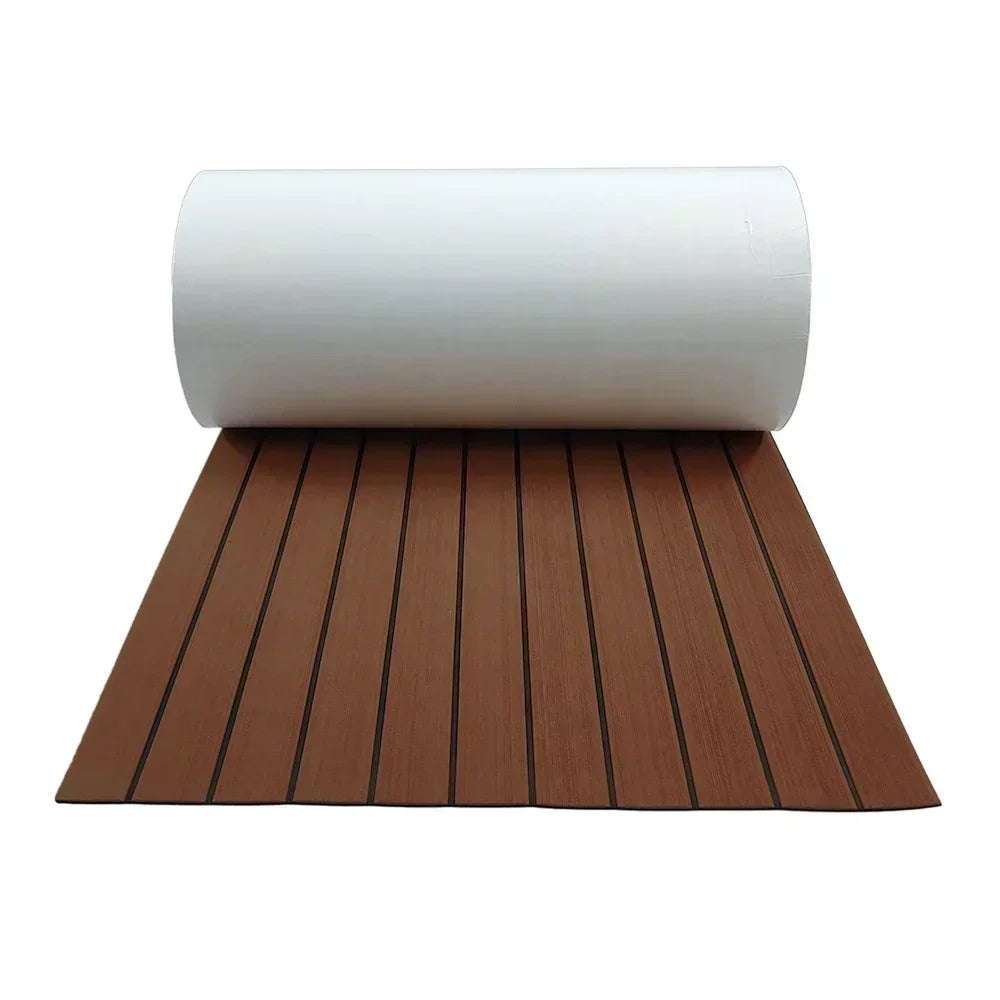 Upgrade your yacht flooring with this 600x2400x5mm EVA foam faux teak boat decking mat in brown. Engineered for durability and aesthetics, it provides anti-skid traction for safety on the water. The self-adhesive backing ensures hassle-free installation, transforming your vehicle pad into a stylish and functional surface for your marine adventures.