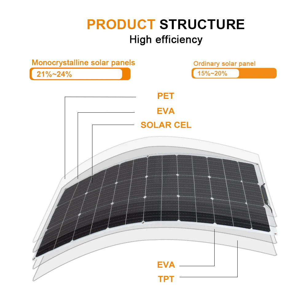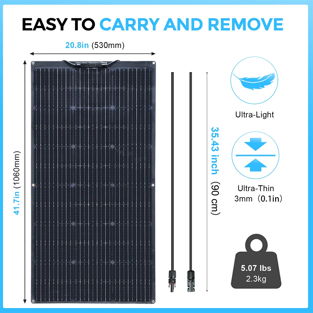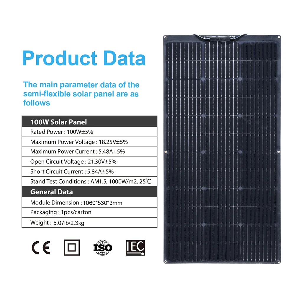 100W Flexible Solar Panel Size: 1050*540*2.5 mm