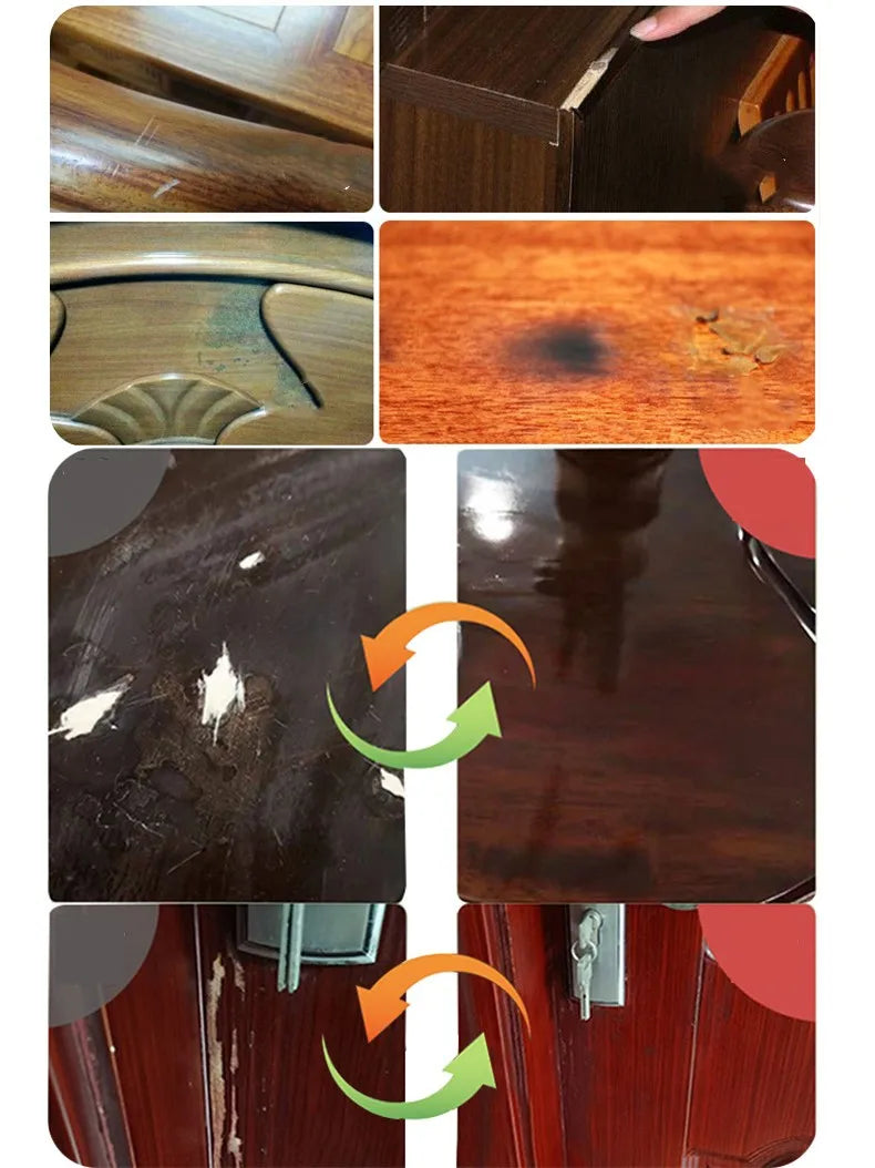 Restores scratches, nicks, scuffs, discoloration on furniture, cabinets, tables, beds and many more.