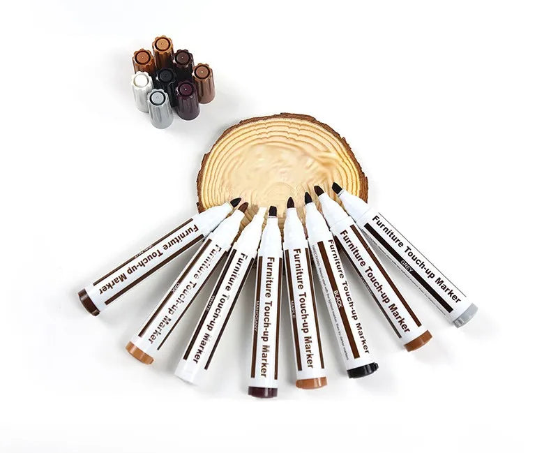 Top quality markers and wax sticks that cover scratches, nicks, scuffs, and discoloration on furniture, cabinets,