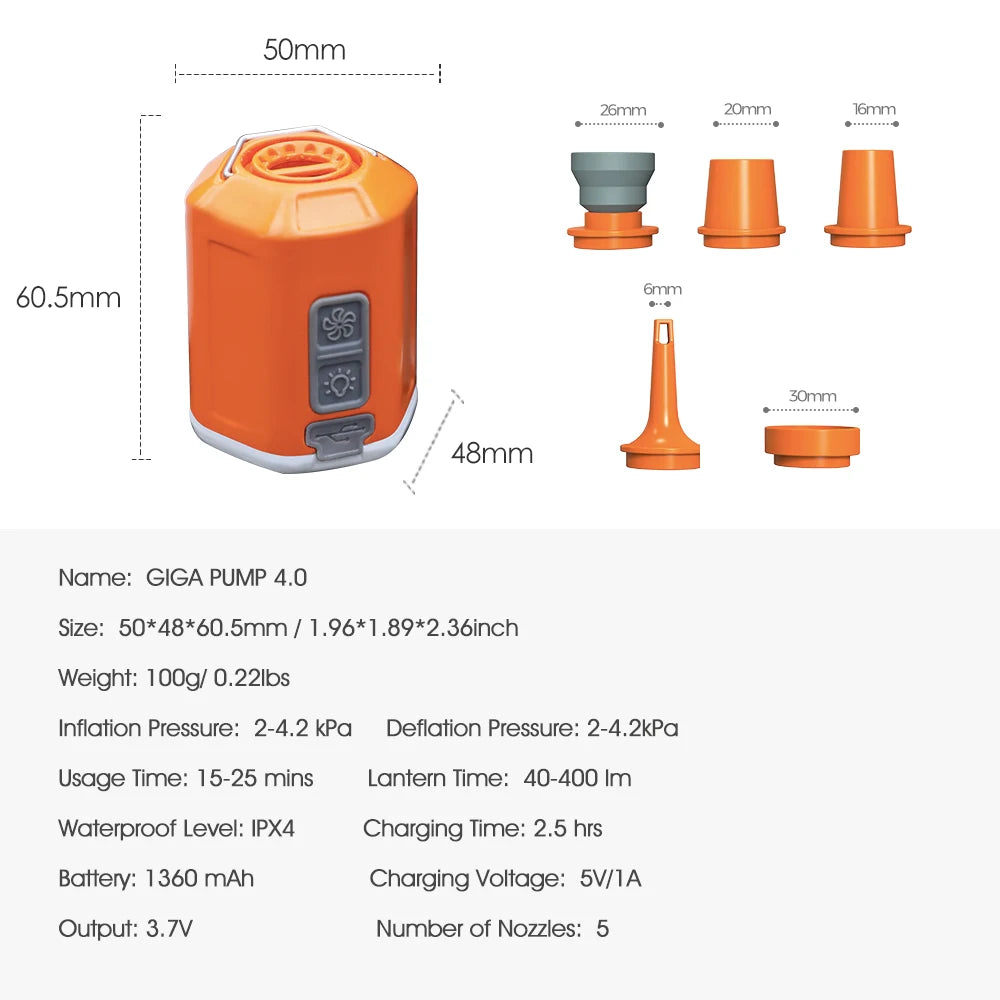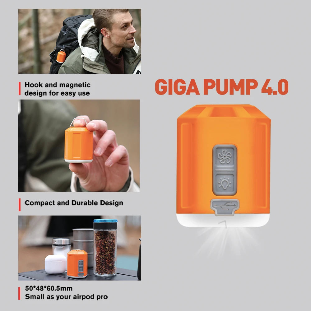 GIGA Pump 4.0 Mini Air Pump 4.2kPa Rechargeable Portable Air Pump with Camping Lantern for Hiking / Sleeping Pad / Swimming Ring