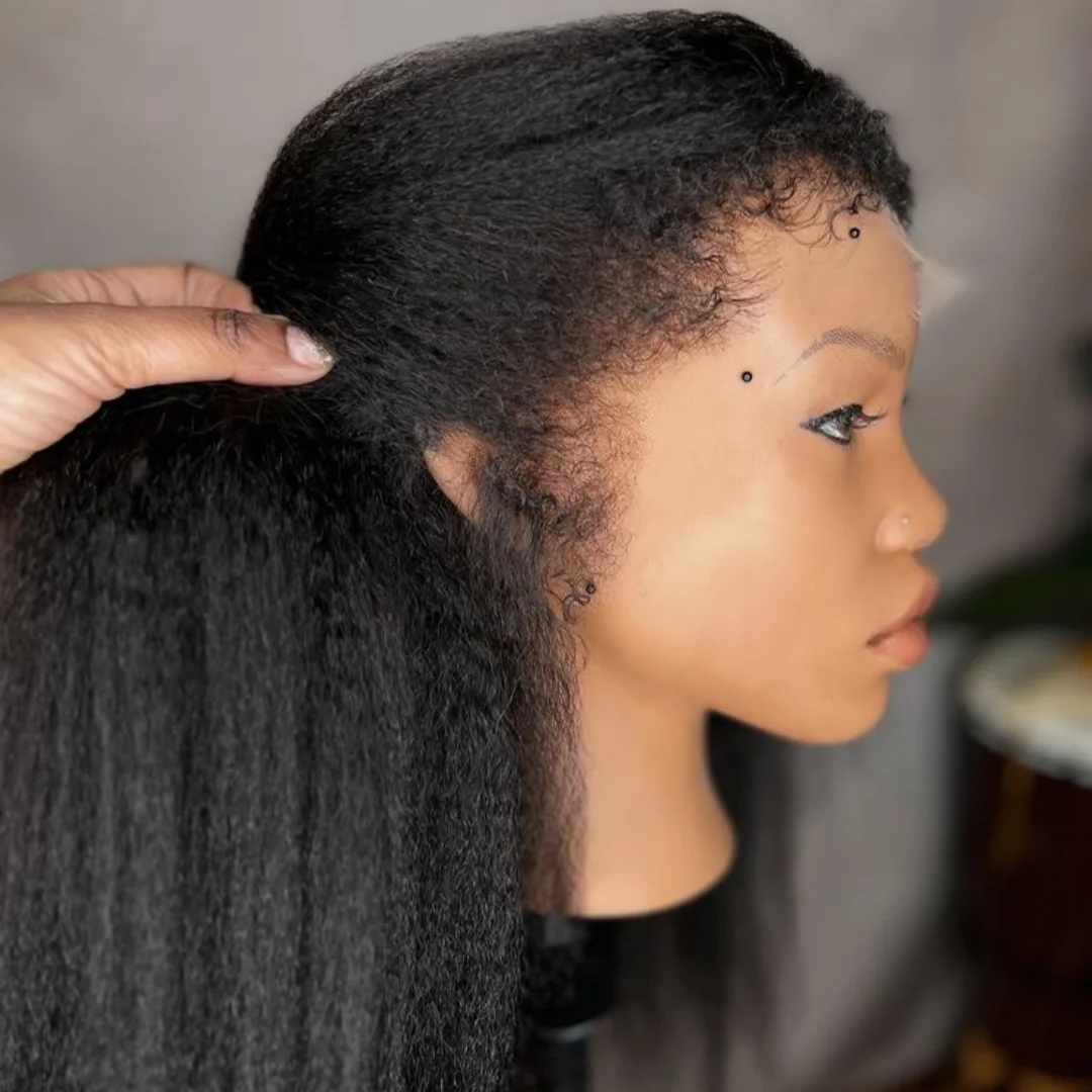 Glueless 180Density Natural Black Kinky Straight Yaki Soft 26 “Long Lace Front Wig For Women BabyHair Preplucked Heat Resistant