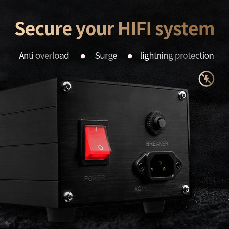 Enhance your audio experience with the HIFI Power Filter and Lightning Protection Strip. This EU-dedicated power strip features advanced filtering technology, providing lightning protection and anti-interference capabilities for your audio system. Ensure clean and stable power supply to your HIFI setup, reducing noise and enhancing audio quality. Enjoy an uninterrupted listening experience with this essential power purifier for audiophiles.