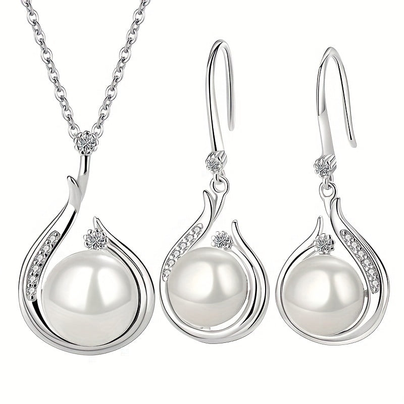 The set includes a stunning pearl necklace, complemented by matching earrings that embody refined beauty. The lustrous pearls are paired with glimmering accents, creating a perfect balance between classic charm and modern elegance. This necklace set exudes grace and is designed to catch the light, making you the center of attention at any event.