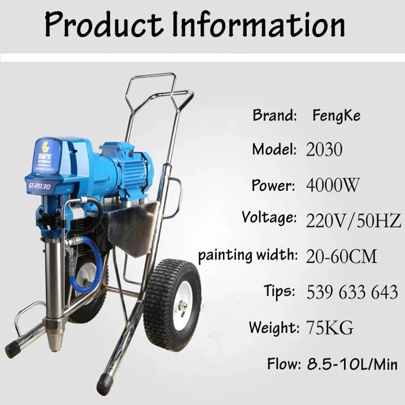 Elevate your painting projects with the Professional Airless Paint Sprayer. Featuring an 8.5L capacity and a robust 4000W motor, this heavy-duty machine delivers flawless results. The long piston pump ensures consistent performance, making it ideal for applying putty, plaster, and paint with precision and efficiency, perfect for professional-grade finishing.