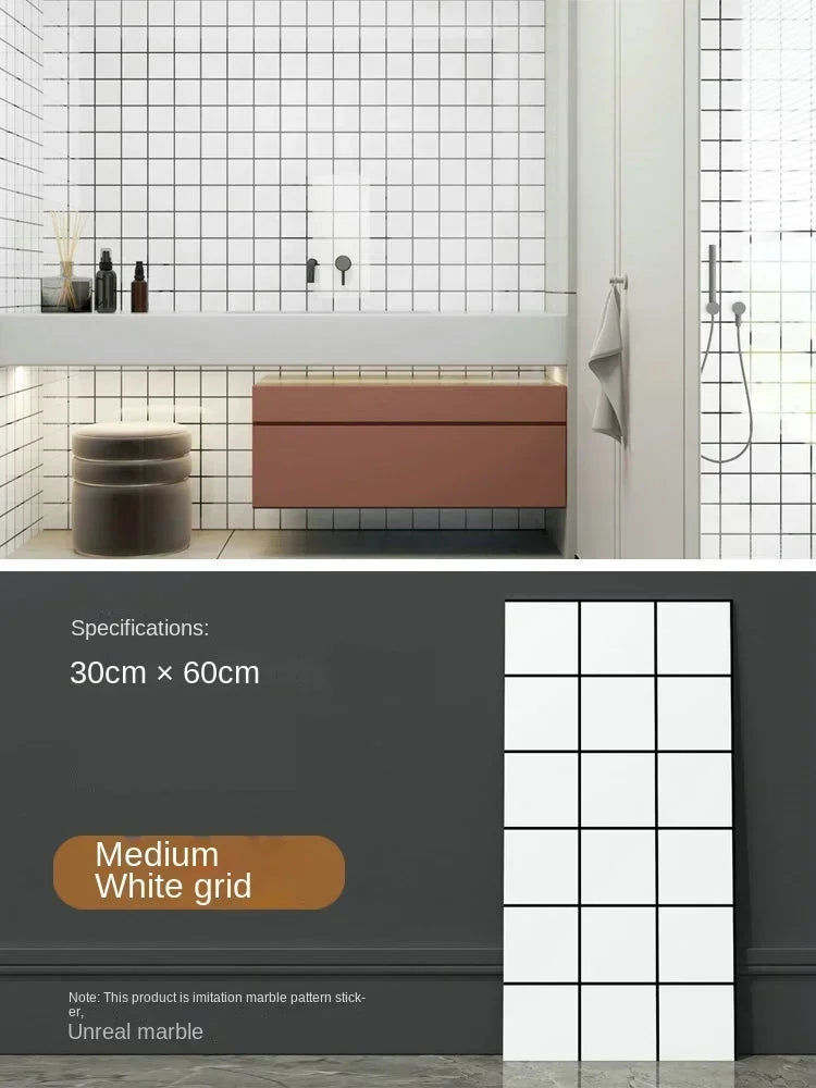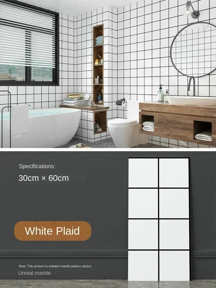 Elevate your bathroom's aesthetic with our stunning self-adhesive imitation ceramic tile wall stickers! Crafted with care, these high-quality marble-patterned stickers capture the look of real tiles, bringing a touch of sophistication and style to your space.