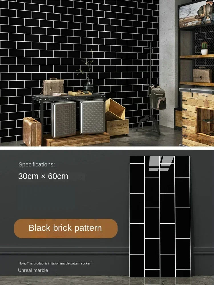 SKU:1005006286294567-Black brick pattern-30X60CM 5PCS