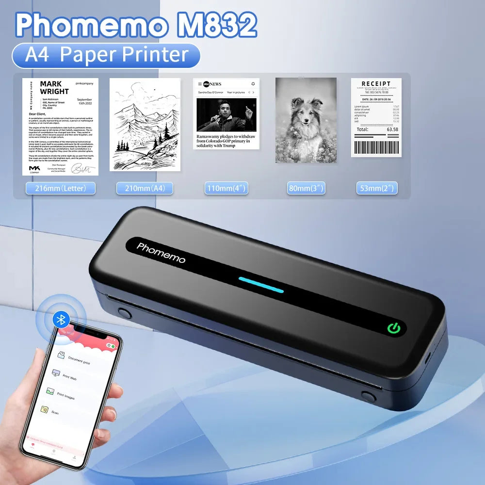- The Phomemo M832 is a compact and lightweight thermal printer, perfect for mobile use. It supports printing from both phones and laptops.