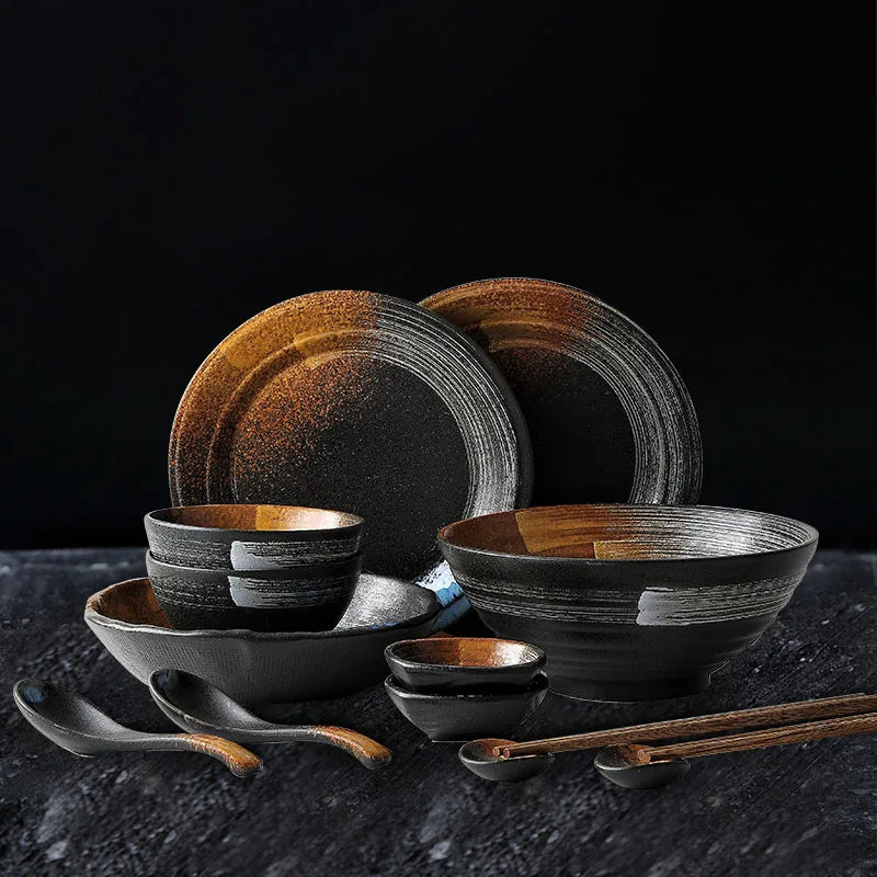 KINGLANG Japanese Dinner Set - Ceramic Retro Tableware Set