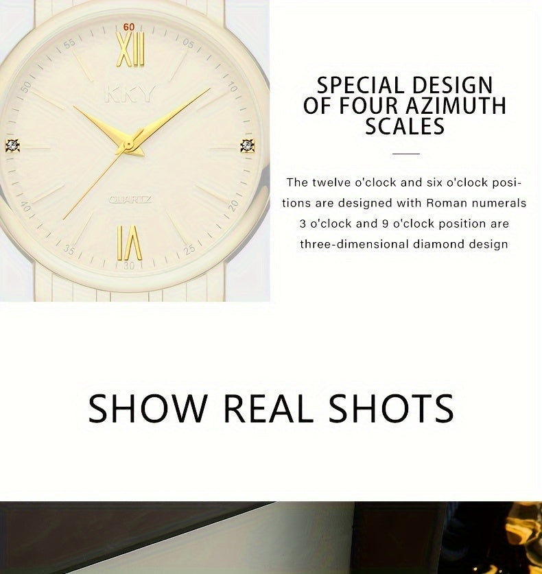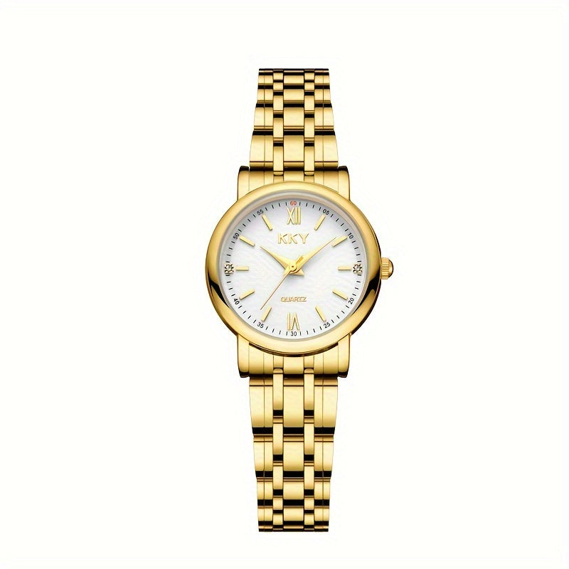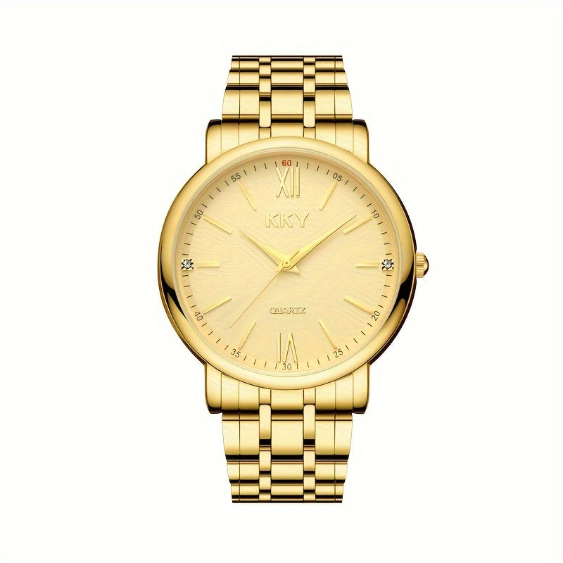 For women who appreciate timeless elegance and a touch of glamour, the KKY Elegant Golden-Tone Quartz Watch for Women is an essential addition to your collection.