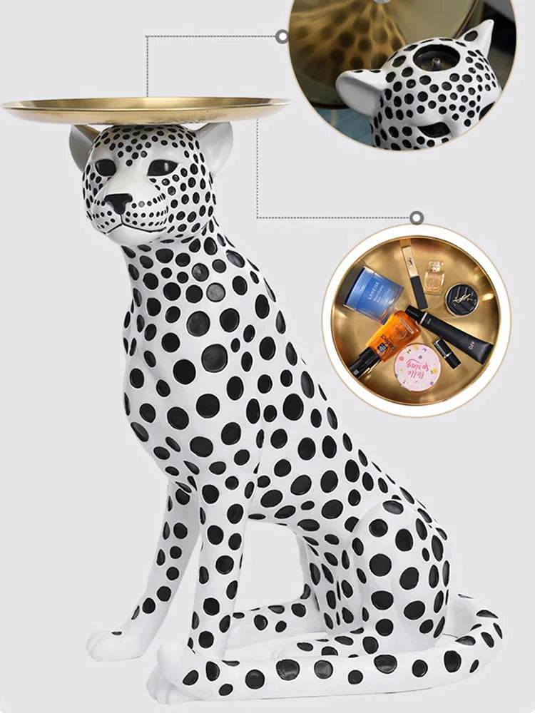 Money leopard statue large floor tray storage ornaments leopard living room ornaments home decorations high-end light luxury porch tray housewarming gifts