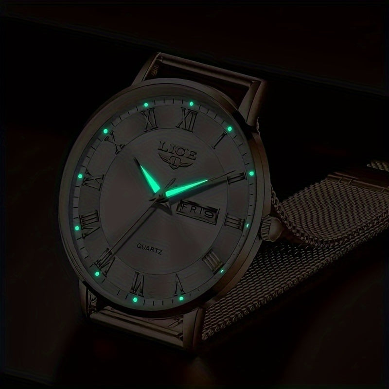 Powered by precision quartz movement, the LIGE watch ensures accurate timekeeping with minimal effort. Say goodbye to winding and constant adjustments, as the quartz mechanism maintains the perfect time, day in and day out.