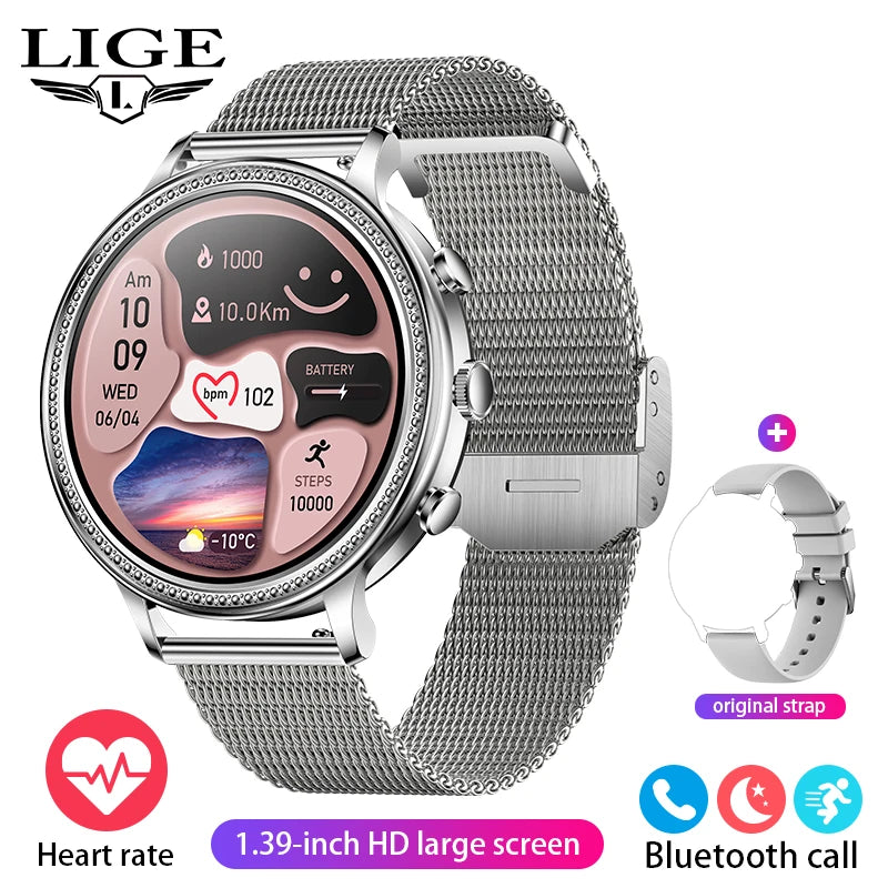 Our LIGE Luxury Smart Watch for Women not only serves as a stylish accessory but also a practical fitness tracker. With Bluetooth connectivity, it allows you to make and receive calls directly from your wrist. The health monitor tracks your activity and sleep, promoting a healthier lifestyle. Perfect as a gift for the modern woman.