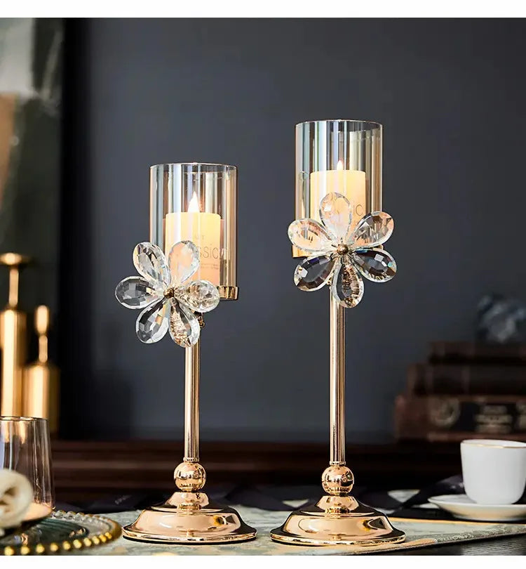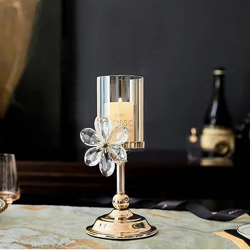 Light Luxury Crystal Petal Glass Candle Holder