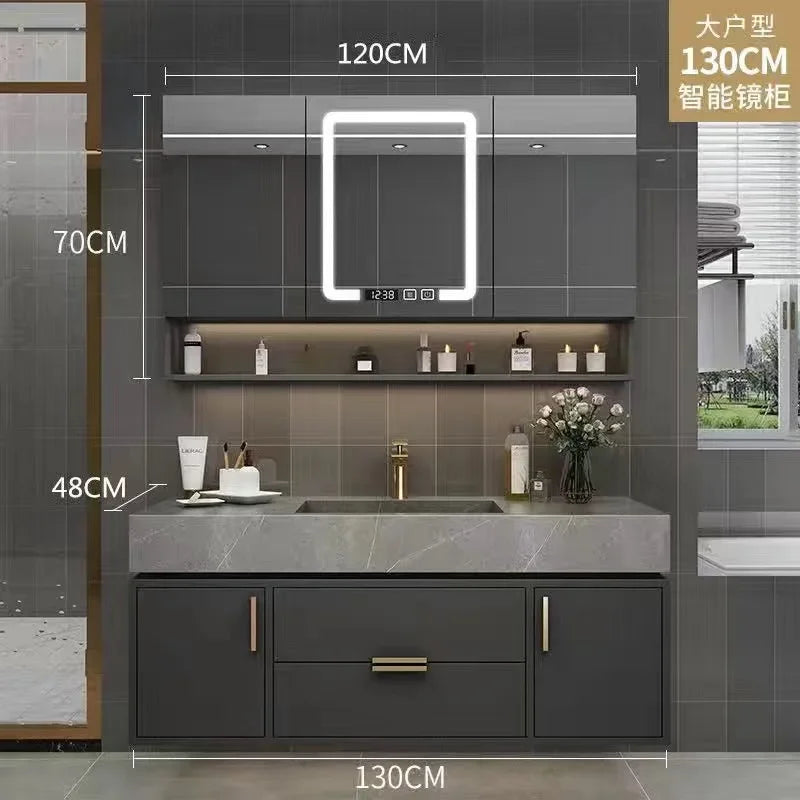 Light Luxury Rock Board Bathroom Cabinets with Smart Mirror